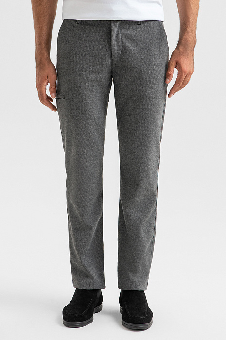 Серые брюки KANZLER из фактурной смесовой хлопковой ткани с дополнительным врезным карманом сбоку — воплощение современного городского стиля. Универсальная и удобная вещь для тех, кто живет в ритме мегаполиса. Достаточно свободный крой позволяет много и активно двигаться. Натуральный воздухопроницаемый хлопок (65%) в составе ткани обеспечивает вентиляцию и поддерживает оптимальную для тела температуру. Вискоза и эластан придают ткани прочность, износоустойчивость и поддерживают аккуратный вид — без складок. Параметры модели: рост 192, 108-83-102 Размер на модели: 50