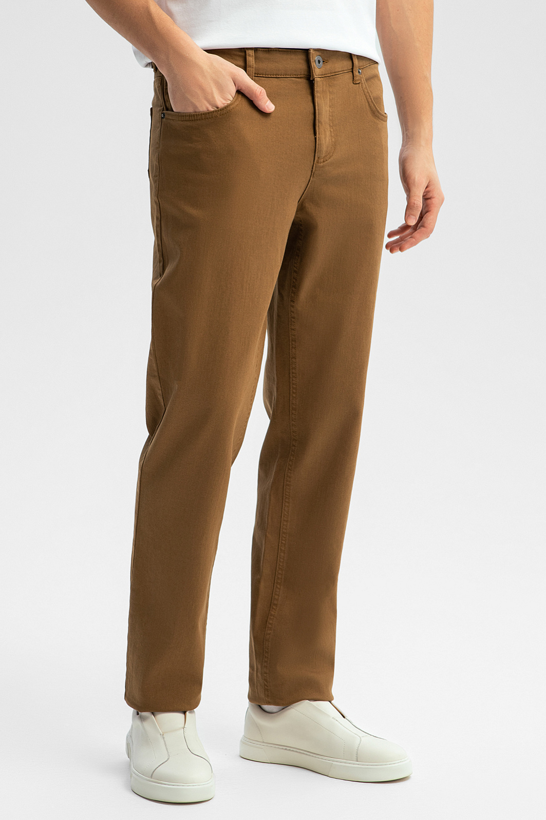 Стильные брюки KANZLER из хлопка оттенка корицы — удобная модель для повседневной жизни, которая сокращает время на сборы, так как хорошо сочетается с любым трикотажным верхом натуральных цветов. Долговечность, надежность и практичность модели обеспечены прочными швами и качественной джинсовой тканью. Прямой свободный крой — залог хорошей посадки и комфорта. Мягкий хлопковый материл подойдет для любого сезона и погоды. Гипоаллергенные воздухопроницаемые волокна поддерживают приятную для тела температуру. Полимерные нити эластана (2%) служат для адаптации к фигуре и сохранения формы. Параметры модели: рост 191, 97-77-99 Размер на модели: 50