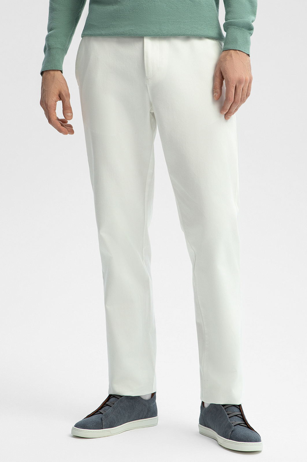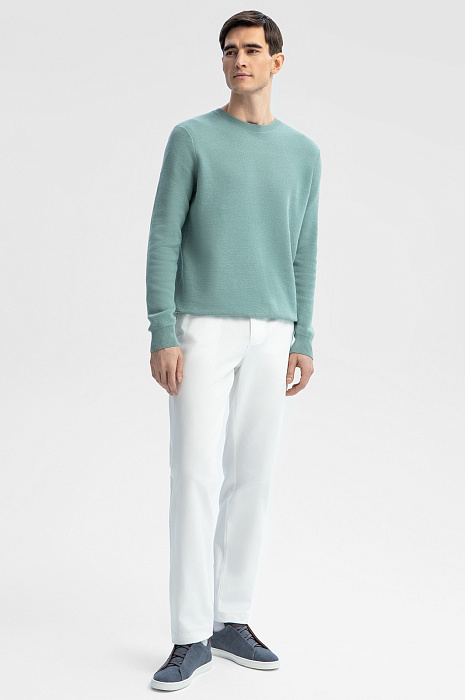 Белые брюки KANZLER из хлопка – роскошный акцент в образе для теплого сезона. Деловая встреча, ужин в ресторане или прогулка по набережной – модель позволяет создавать комплекты для самых разных случаев, становясь инвестицией в ваш стиль. Прочный и легкий материал – 100% хлопок с фактурой в мелкий рубчик – приятен на ощупь, позволяет коже дышать и подходит для продолжительного ношения в течение всего дня. Классический крой обеспечивает комфортную посадку и свободу движений, идеально адаптируясь к любому типу телосложения. Белоснежный цвет отлично работает как на контрасте с темными оттенками, так и в пастельной палитре, придавая образу свежесть, легкость и благородство. Параметры модели: рост 192, 101-76-97 Размер на модели: 50