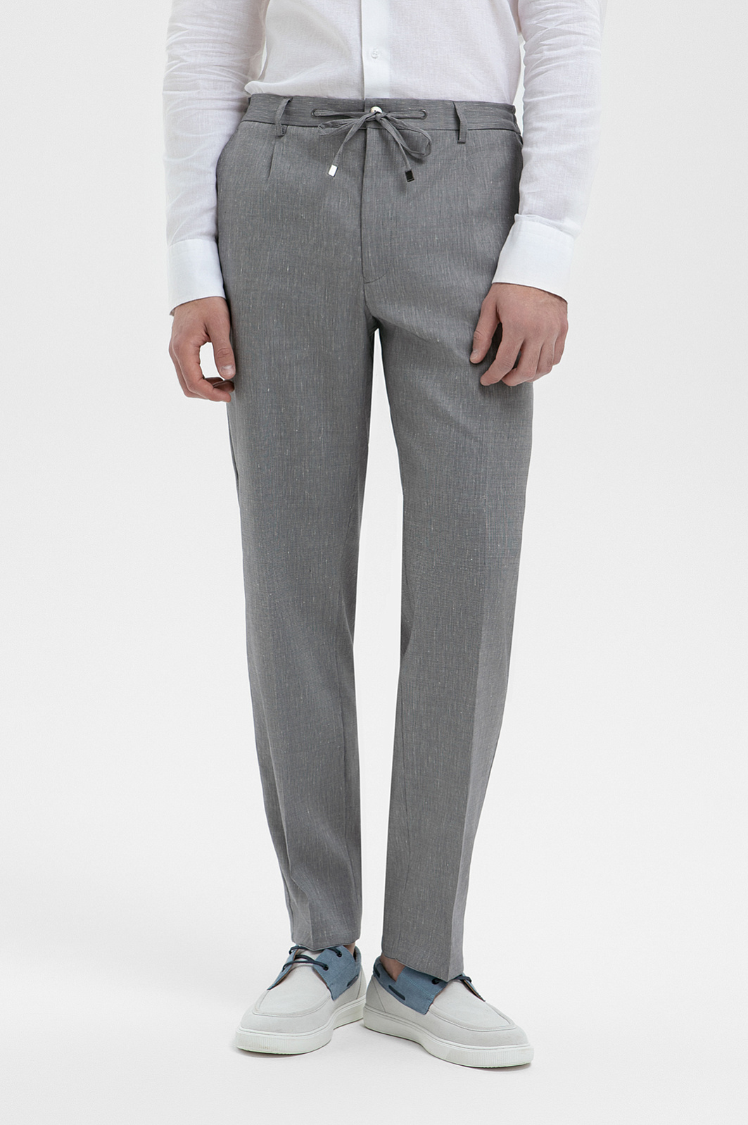 Брюки из шерсти, льна и шелка, цвет серый, цена 17 990 руб., код 271038 - купить в Перми в интернет-магазине KANZLER