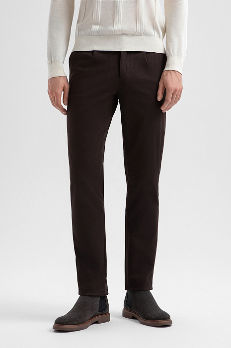 Брюки из хлопка, цвет коричневый, цена 12 990 руб., код 271306 - купить в Перми в интернет-магазине KANZLER