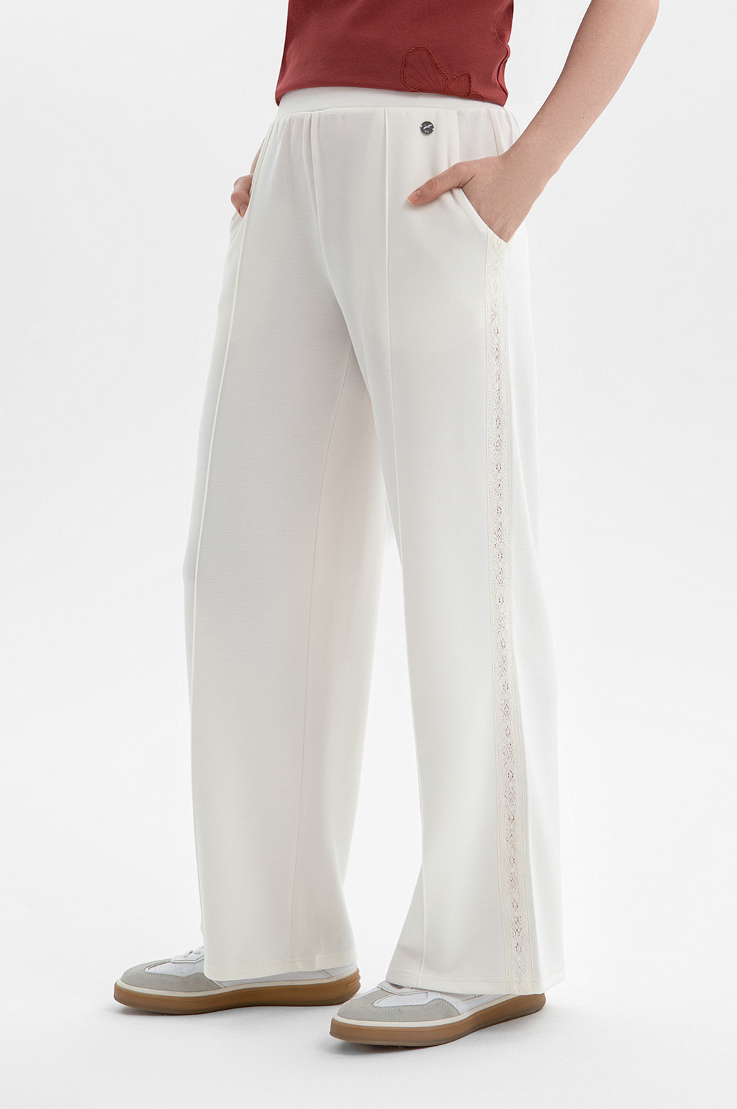Брюки с кружевными лампасами, цвет белый, цена 8 990 руб. - купить в интернет-магазине KANZLER