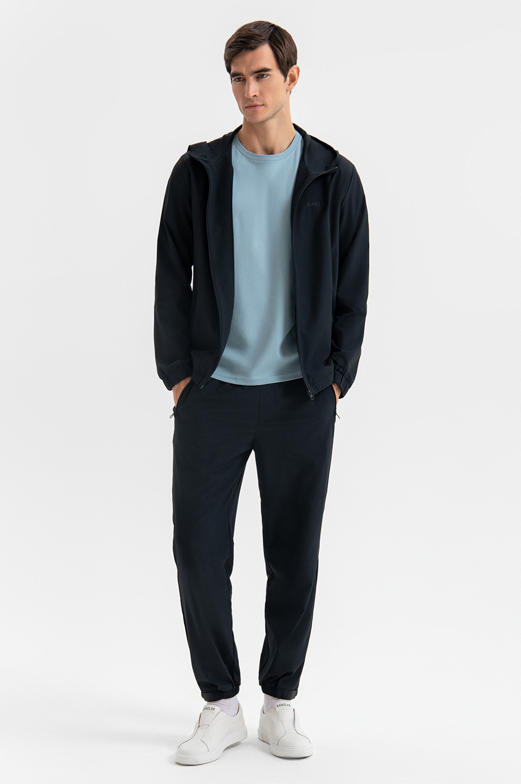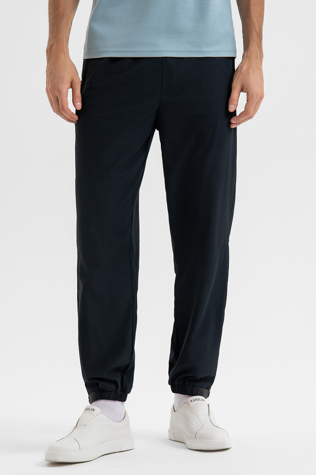 Спортивные черные брюки KANZLER в минималистичном стиле предназначены для тренировок и прогулок на свежем воздухе. Для создания цельного современного образа для активных будней модель можно дополнить черной толстовкой KANZLER. Лаконичный дизайн без лишних деталей подчёркивает спортивную эстетику. Посадка — расслабленная, но аккуратная. Скрытая резинка по низу фиксирует брюки по щиколотке. Основной материал — лёгкая, износостойкая и эластичная смесовая ткань повышенной прочности (85% нейлон, 15% спандекс). Подкладка из мягкого дышащего материала с добавлением гипоаллергенного хлопка (35%) создаёт ощущение уюта и комфорта. Параметры модели: рост 192, 101-76-97 Размер на модели: M