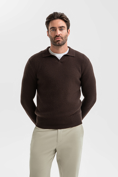 Джемпер поло из шерсти и кашемира, цвет коричневый, цена 9 990 руб., код 269969 - купить в Перми в интернет-магазине KANZLER