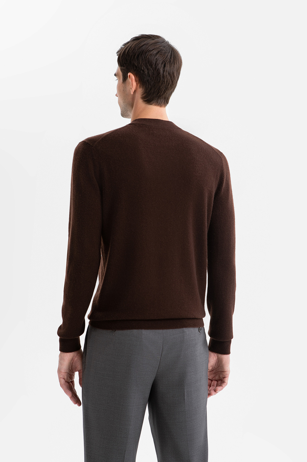 Джемпер KANZLER оттенка горького шоколада из превосходного 100-процентного кашемира — воплощение сдержанной роскоши, комфорта, элегантности и безупречного качества — лимитированной коллекции дизайнерских вещей из дорогих благородных тканей. Универсальный коричневый оттенок придаёт облику благородство и основательность. Полукруглый неглубокий вырез горловины, манжеты и нижний край оформлены трикотажной резинкой, которая обеспечивает безупречную посадку и завершённость силуэта. Гладкий трикотаж добавляет образу строгости. Он выполнен из дорогого кашемира — легчайших натуральных волокон, которые мягко обнимают тело и делают ношение джемпера настоящим удовольствием. Параметры модели: рост 192, 101-76-97 Размер на модели: M