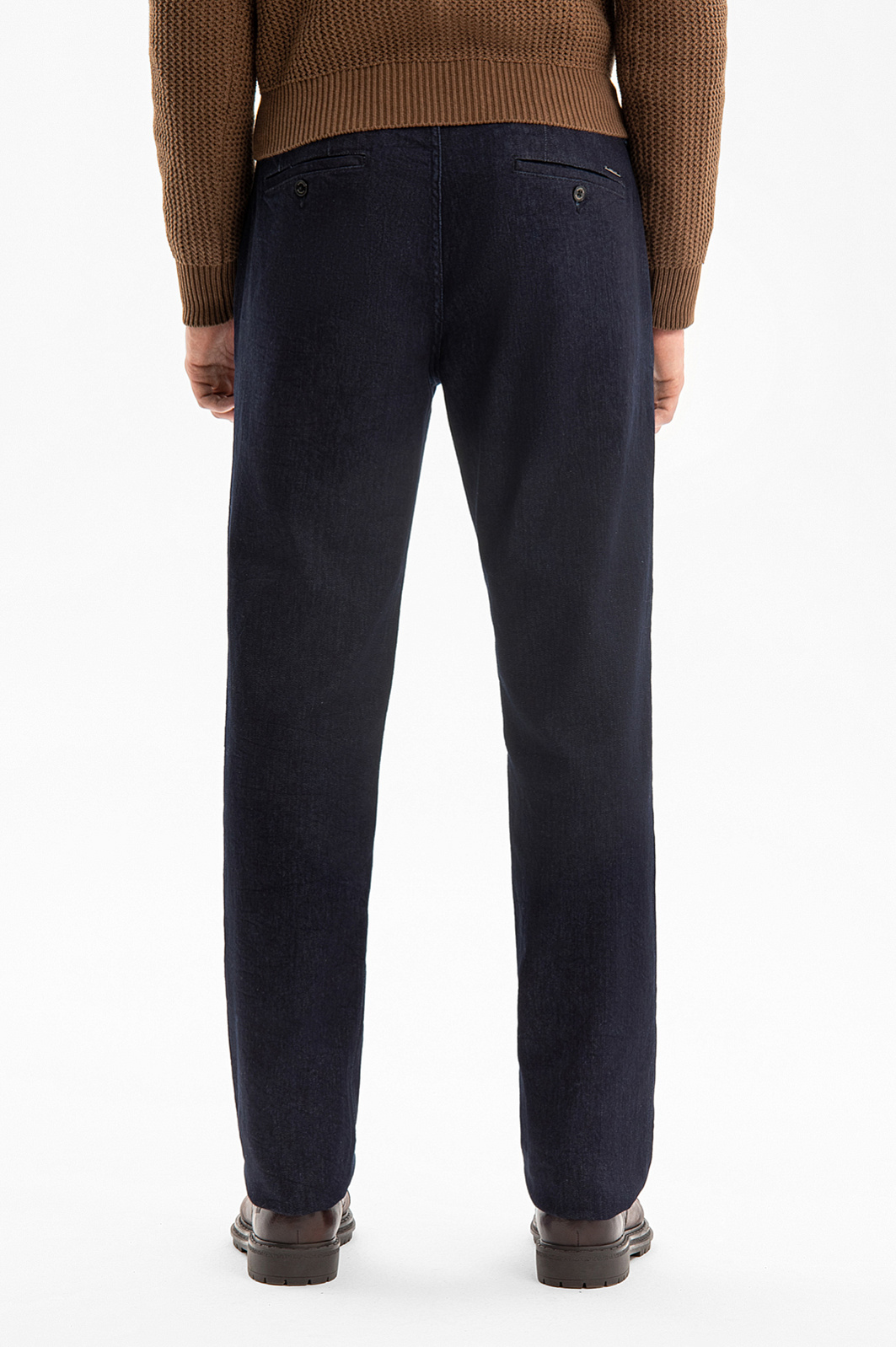 Джинсы KANZLER объединяют эстетику классического синего денима и элегантный брючный крой, создавая универсальную основу для повседневных городских образов. Прямой силуэт обеспечивает удобную посадку и визуально вытягивает пропорции тела. Небольшой металлический шильдик и пуговицы с логотипом на задних карманах служат деликатным декоративным акцентом. Мягкий приятный к телу деним из гипоаллергенного дышащего хлопка (98%) с добавлением эластана (2%) обеспечивает комфорт и ощущение свежести в течение дня. Внутренняя подкладка из прочной смесовой ткани повышает износостойкость и облегчает надевание брюк.