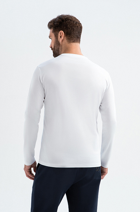 Белоснежный лонгслив KANZLER – фундамент гардероба для мужчин, ценящих чистоту линий и превосходное качество. Это универсальный выбор для множества случаев – от классических образов до спортивных. Носите лонгслив как самостоятельный элемент или создавайте многослойные образы с рубашкой или кардиганом. Модель выполнена из 100-процентного мерсеризованного хлопка премиального качества. Материал обеспечивает воздухообмен, отводит влагу и сохраняет форму после многократных стирок. Белоснежный оттенок создает свежий образ и сочетается с любыми цветами в гардеробе. Параметры модели: рост 189, 102-80-99 Размер на модели: M