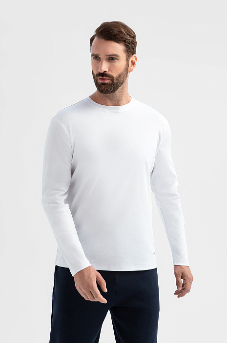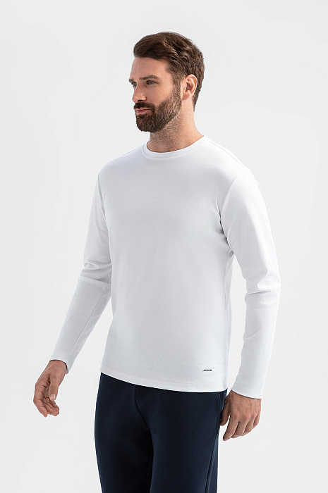 Лонгслив из мерсеризованного хлопка, цвет белый, цена 6 990 руб., код 270218 - купить в Перми в интернет-магазине KANZLER