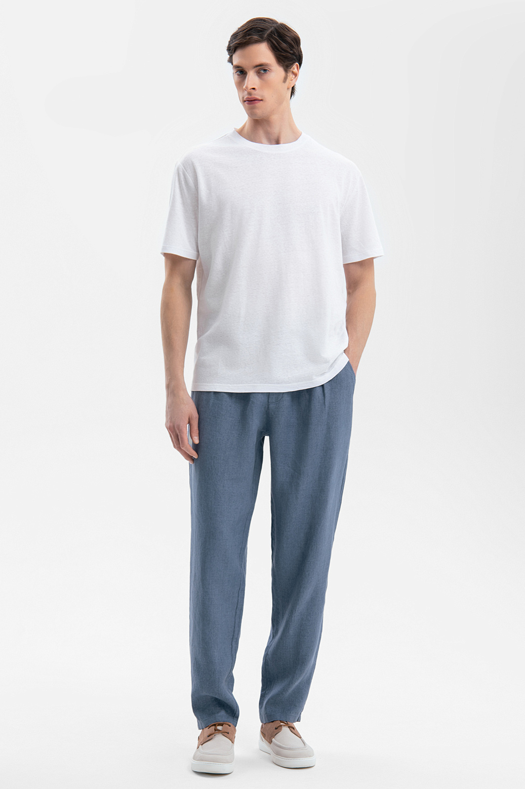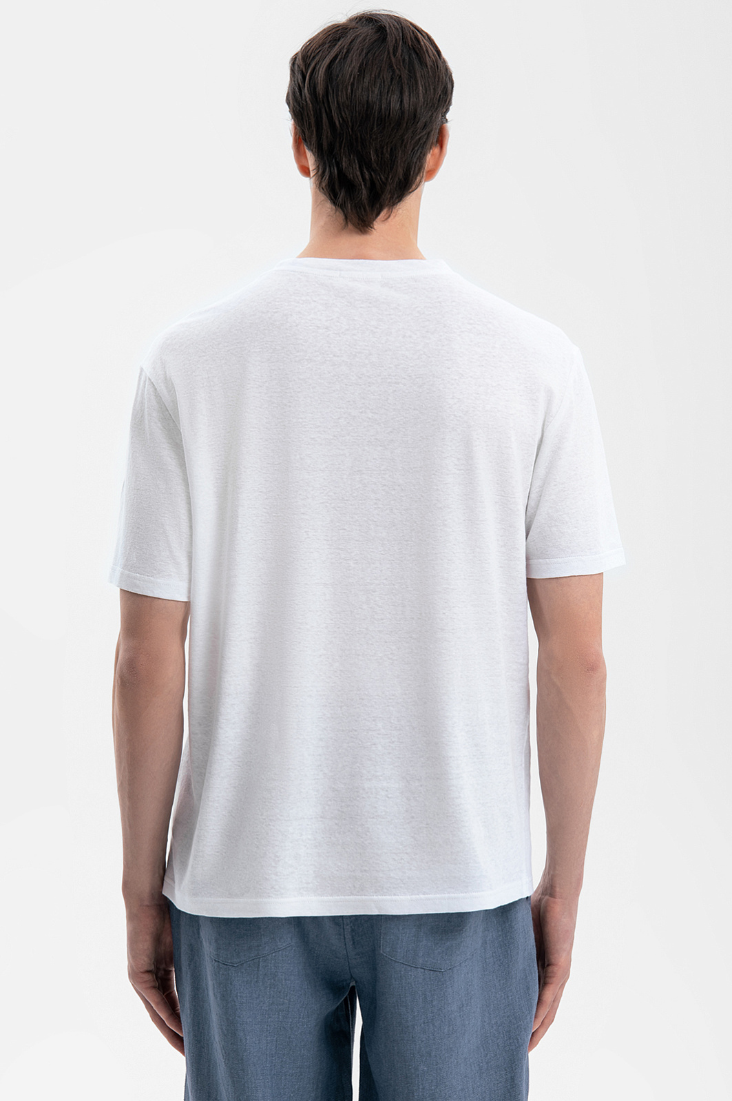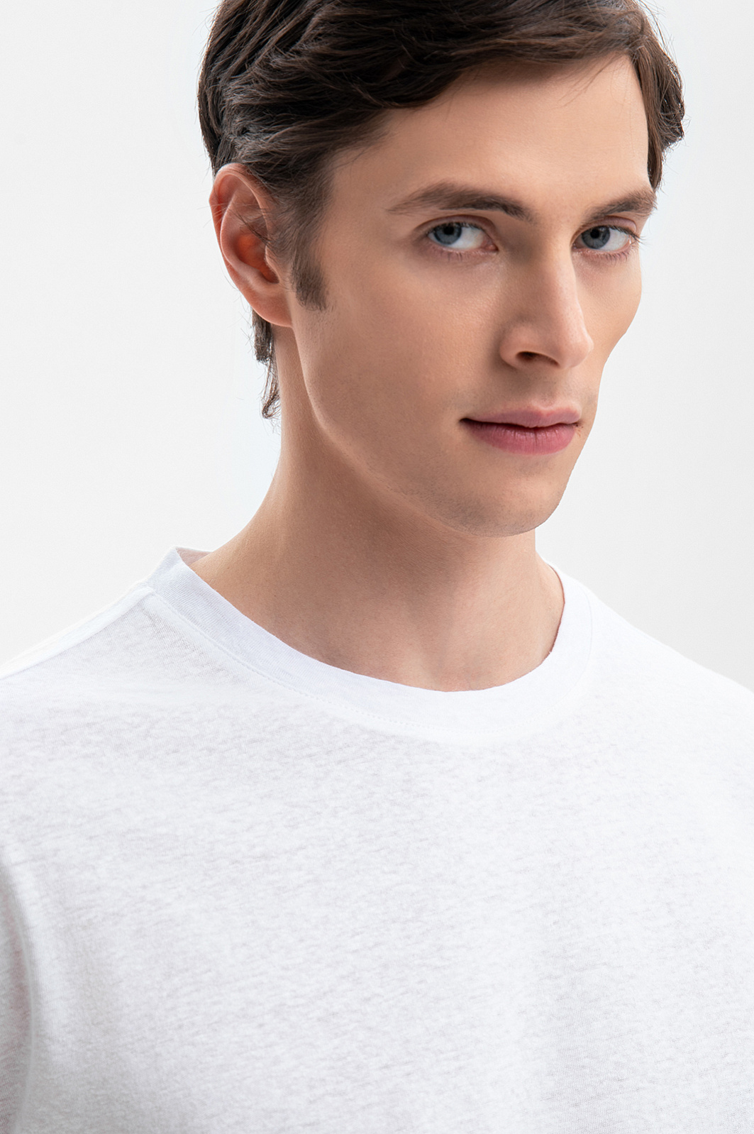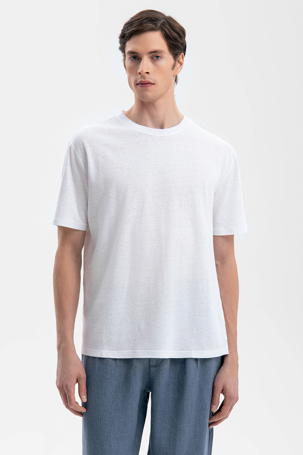 Стильный минимализм и комфорт натурального материала – белая футболка KANZLER станет основой вашего летнего гардероба. Ключевая особенность модели – легкая, дышащая ткань, обеспечивающая мягкое соприкосновение с телом. Гигроскопичные волокна льна отлично впитывают влагу, оставляя кожу сухой, быстро сохнут и обладают терморегуляционными свойствами. Гипоаллергенный хлопок обеспечивает мягкость и воздухопроницаемость. Экологичный и прочный материал превосходно сохраняет форму в течение долгого времени. Свободный крой не ограничивает движения и добавляет образу нотку непринужденности. Белый цвет универсален и гармонирует с любыми оттенками в гардеробе. Сочетайте футболку с льняными брюками и лоферами или брюками и кедами. Параметры модели: рост 189, 91-78-95 Размер на модели: М