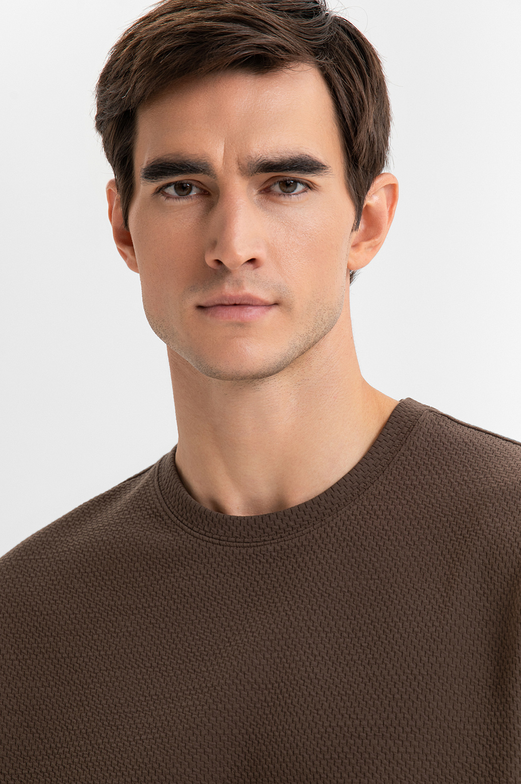 Футболка фактурной вязки, цвет коричневый, цена 2 990 руб., код 269999 - купить в Перми в интернет-магазине KANZLER