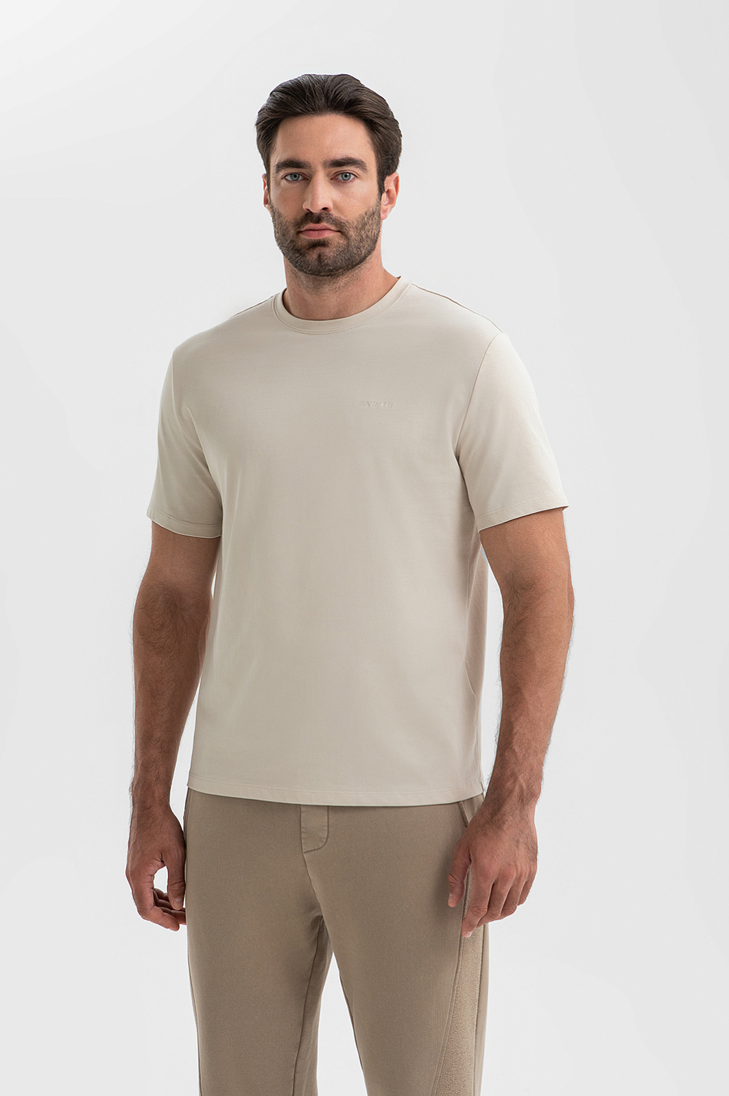 Футболка из хлопка, цвет бежевый, цена 3 990 руб., код 270212 - купить в Перми в интернет-магазине KANZLER