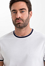 Белая футболка KANZLER с круглым вырезом из мерсеризованного хлопка — выверенная база с графичными деталями. Она легко вписывается в гардероб мужчины, который выбирает качество, лаконичность и минимализм. Прилегающий крой мягко подчёркивает силуэт, формируя собранный и уверенный образ. Контрастные синие полоски по краям горловины и рукавов расставляют точные акценты и придают образу нотку ретро-шика. Плотный высококачественный трикотаж из 100% мерсеризованного хлопка отличается лоском, гладкой текстурой и высокой износостойкостью. Его воздухопроницаемые гигроскопичные волокна поддерживают оптимальный микроклимат и свежесть весь день.