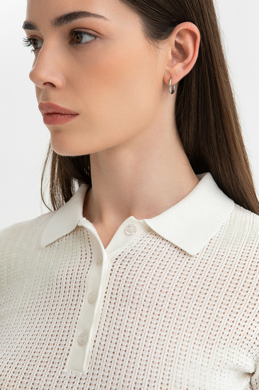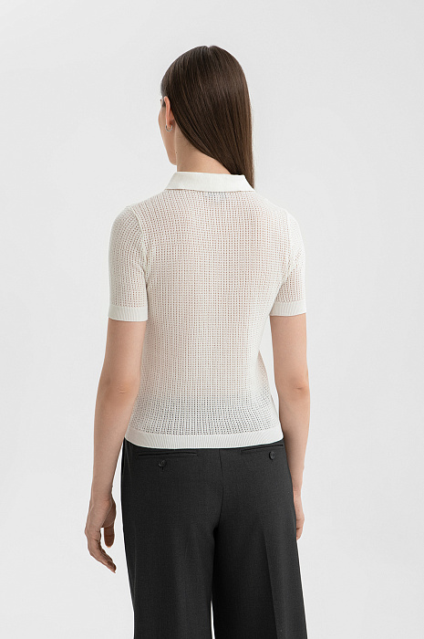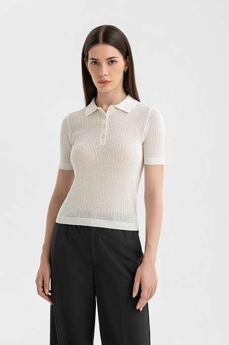 Белое поло KANZLER – вечная классика, которая позволяет с легкостью создавать безупречные образы для офиса, прогулок и романтических свиданий. Состав – сочетание хлопка и шелка – превращает базовую модель в источник тактильного наслаждения. Гипоаллергенные волокна мягкого хлопка сохраняют комфортную температуру тела, а шелк придает материалу особую нежность и гладкость. Ажурный узор – не просто элемент декора: он обеспечивает циркуляцию воздуха, а плотная вязка резинкой на манжетах и по низу изделия гарантирует идеальную посадку.