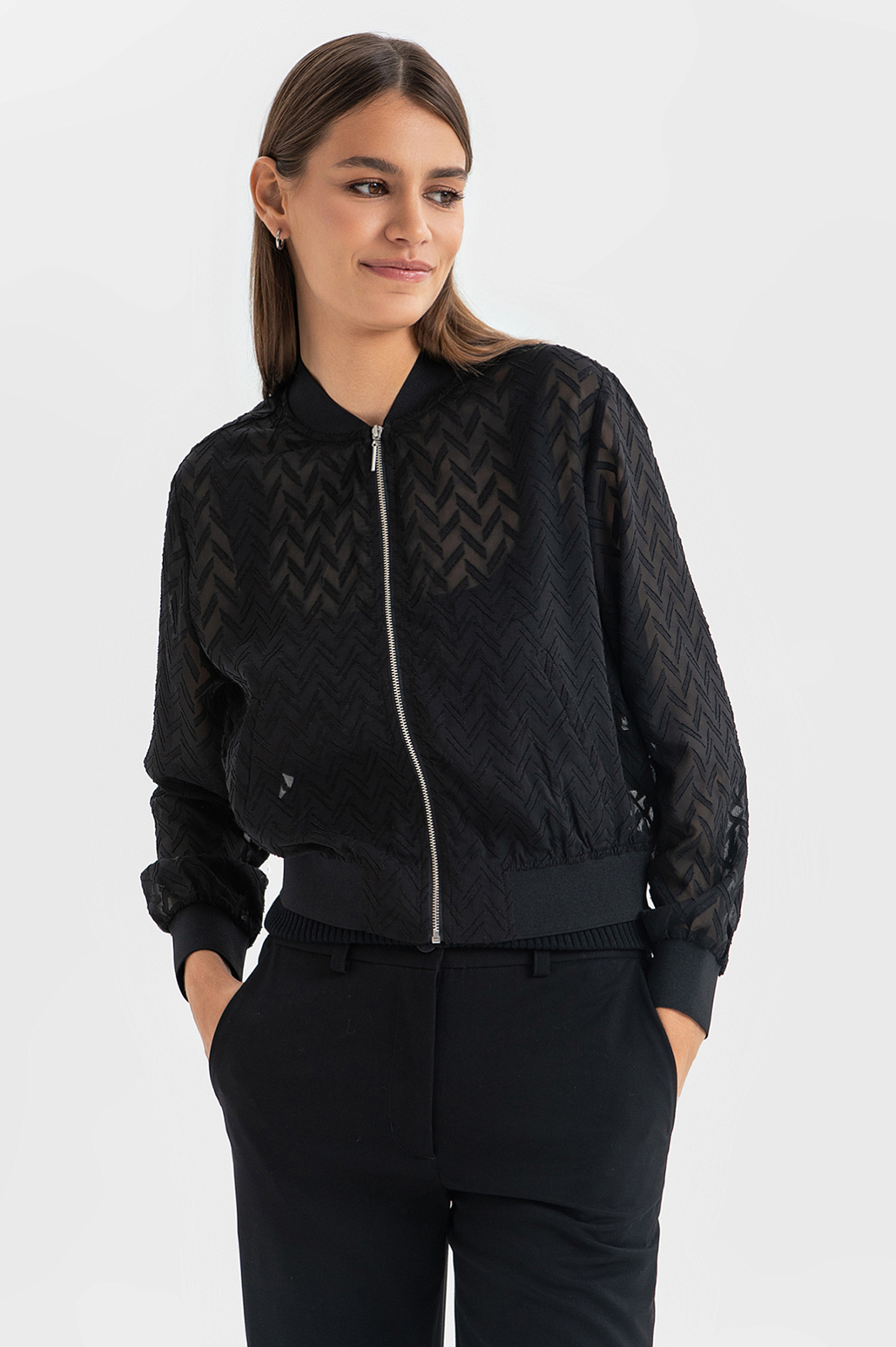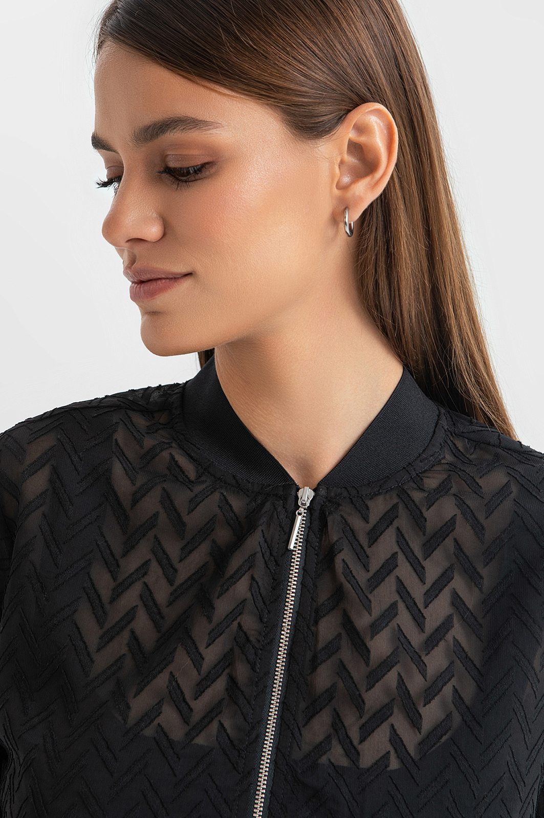 Идеальный баланс женственности, игривости и комфорта – черный кардиган-бомбер KANZLER. Канонический фасон в новом прочтении – укороченная модель из полупрозрачного материала выглядит изящно, а узор шеврон создает небольшой контраст и добавляет образу глубины. Материал премиального качества обладает долговечностью, отлично сохраняет форму и легок в уходе. Прогулка по городу, открытие выставки, встреча с друзьями – кардиган станет главным акцентом множества образов. Стилисты предлагают дополнить модель черным топом и расклешенными брюками для создания акутального образа. Параметры модели: рост 175, 86-62-92 Размер на модели: S