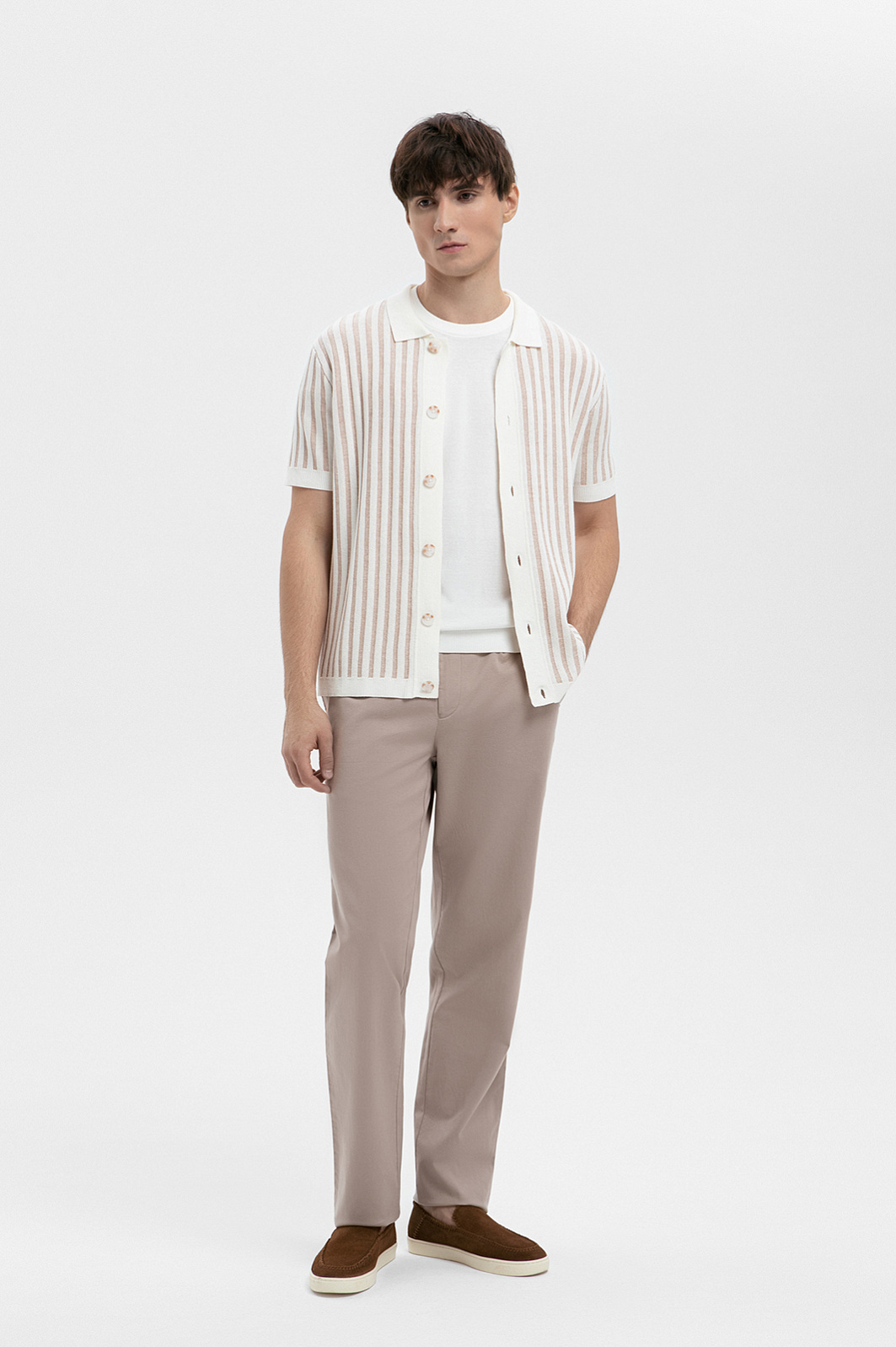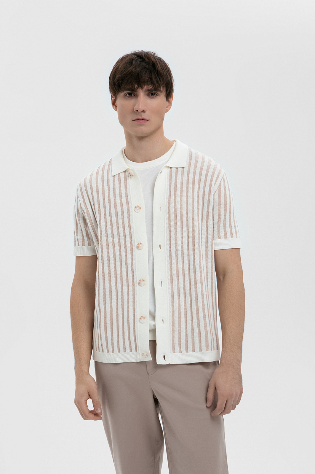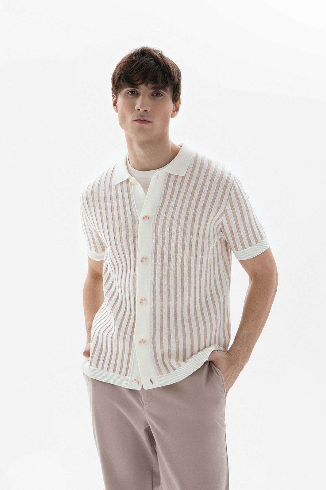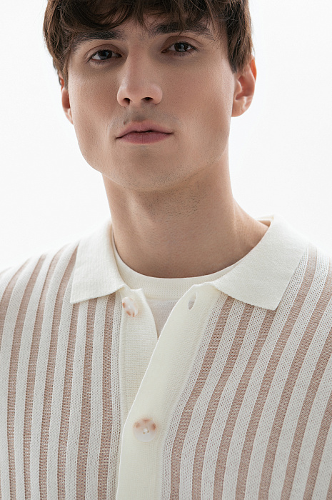 Сорочка с коротким рукавом из хлопка и льна, цвет бежевый, цена 8 990 руб., код 271013 - купить в Перми в интернет-магазине KANZLER