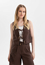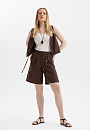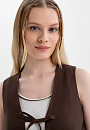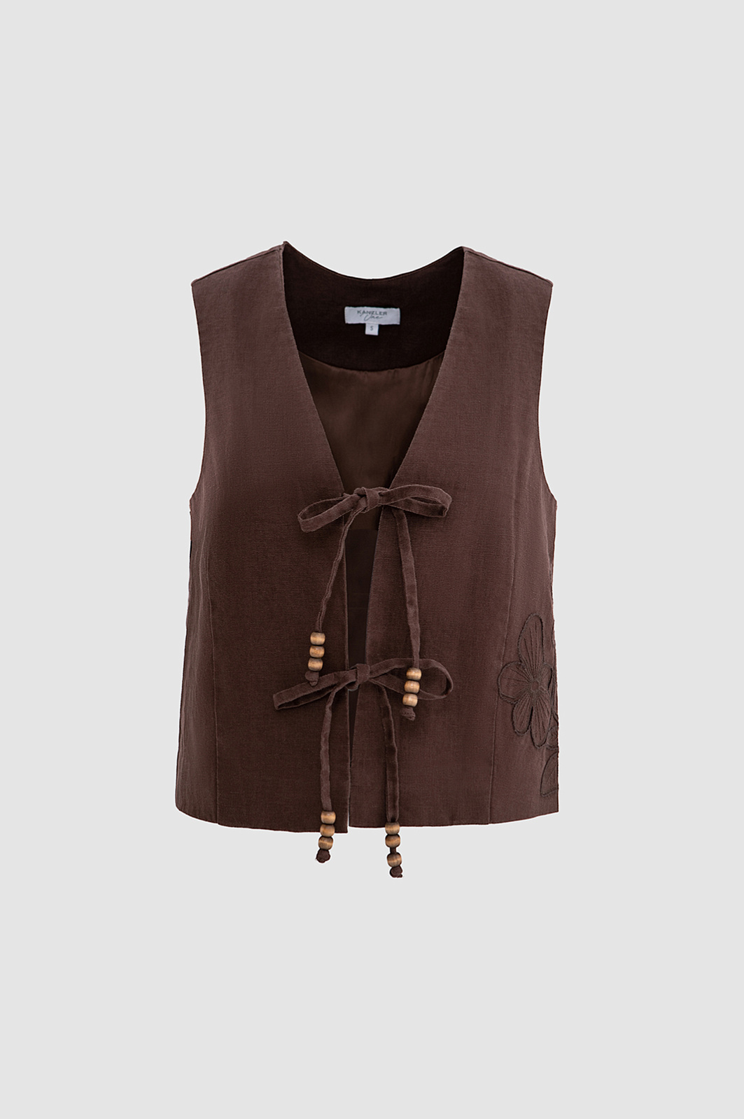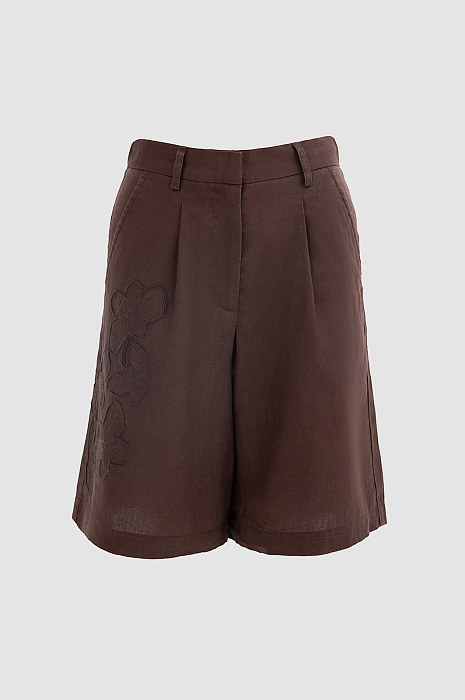 Коричневый льняной костюм KANZLER с изящной цветочной вышивкой воплощает сдержанный этно-шик и непринуждённость летнего гардероба. В нём приятно бродить по улочкам южного города, заглядывая в сувенирные лавки и останавливаясь в аутентичных кафе, чтобы выпить чашечку жгучего кофе. Верхняя часть комплекта — лаконичный жилет на завязках, украшенных крупными бусинами. Низ представлен шортами умеренно свободного кроя с аккуратными защипами у пояса, которые формируют мягкие складки и обеспечивают аккуратную посадку. Материал — чистый лен, придающий полотну естественную структуру. Натуральные гипоаллергенные волокна отлично пропускают воздух и отводят влагу, сохраняя ощущение свежести даже в самые жаркие дни.
