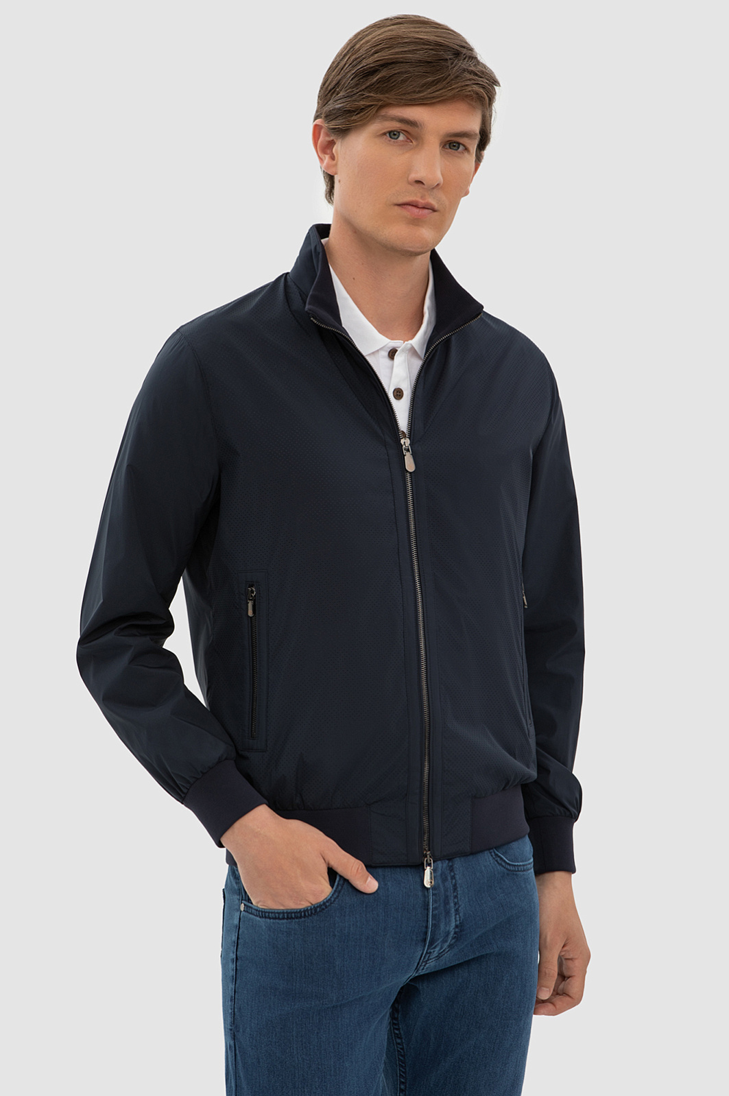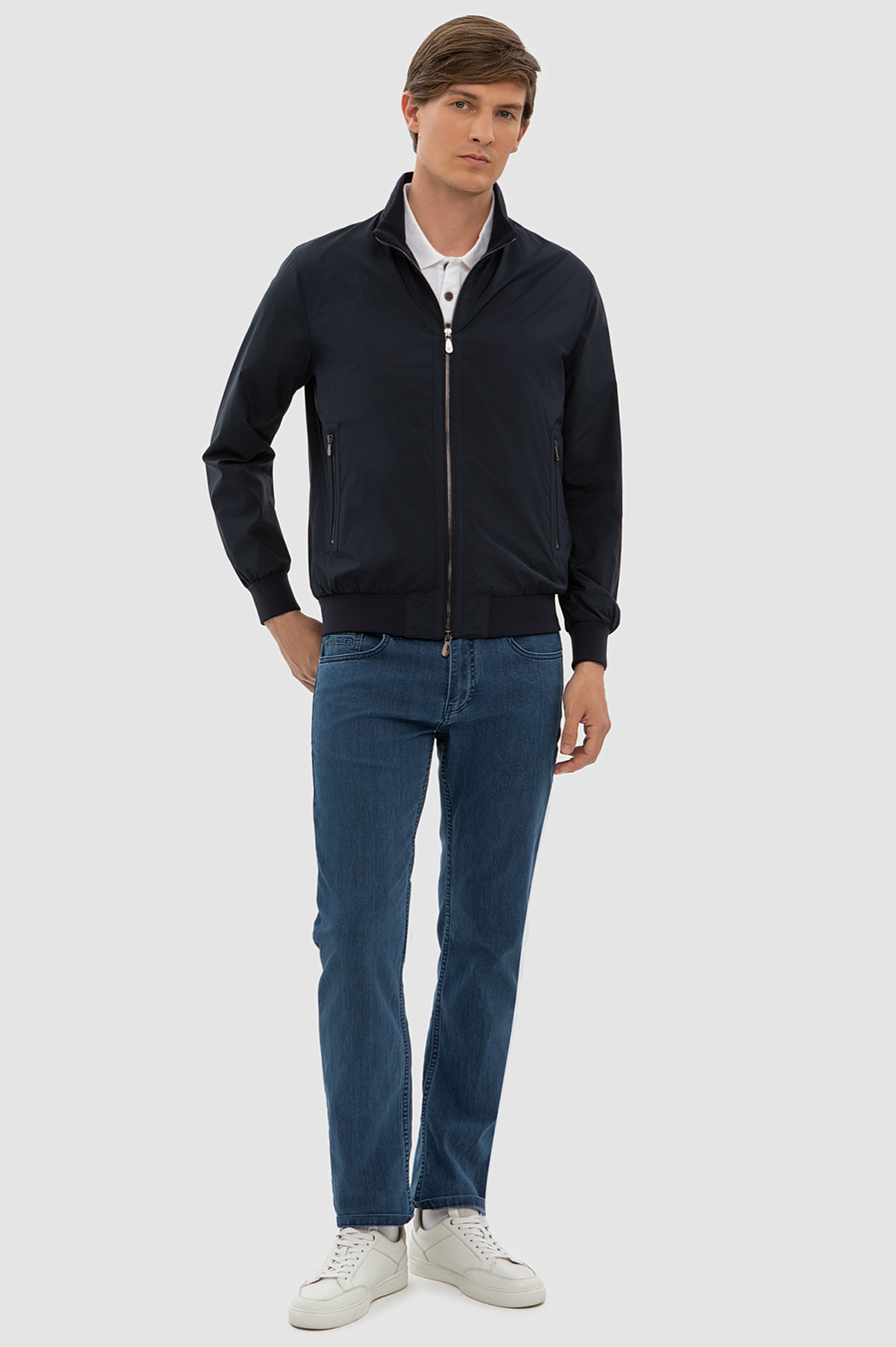 Лаконичный черный бомбер KANZLER из черного непродуваемого полиэстера — функциональная вещь со спортивным характером. Модель отлично сочетается с неформальными брюками на кулиске, джоггерами и джинсами и адресована активному жителю мегаполиса. Дизайн куртки полностью соответствует классическому канону бомбера. Широкие вставки-резинки на манжетах и подоле фиксируют края куртки, обеспечивая отличную посадку, и защищают тело от ветра. Язычки на двухзамковой молнии и застежках боковых карманов украшены фирменным инициалом. Вместительный внутренний карман предназначен для хранения документов и важных мелочей. Ткань куртки — полиэстер — не требует специального ухода. Она прочная, долговечная и не боится дождя. Параметры модели: рост 191, 97-77-99 Размер на модели: 50