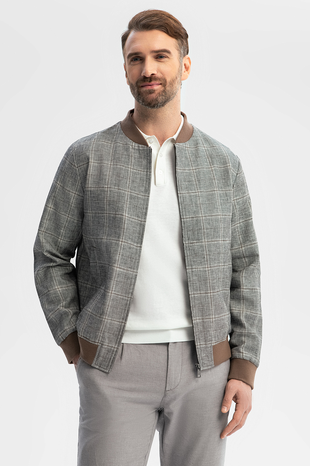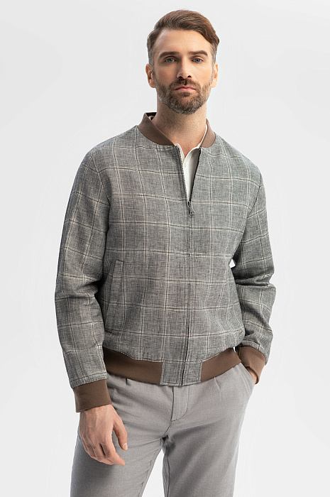 Бомбер изо льна и хлопка, цвет серый, цена 19 990 руб., код 269088 - купить в Перми в интернет-магазине KANZLER