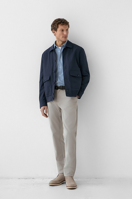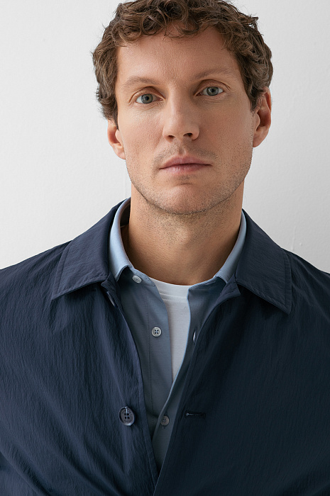 Куртка KANZLER глубокого синего цвета предназначена для адептов непринуждённой современной классики. Она вдохновляет двигаться в своём ритме, открывая в городе новые точки притяжения — тихие улицы и уютные кофейни. Универсальную модель можно носить со строгими и неформальными брюками. Современный силуэт дополняют лаконичные выразительные детали — аккуратный мягкий воротник, большие карманы с клапанами, пуговицы на планке и рукавах, — которые усиливают ощущение вневременной элегантности. Внешняя ткань имеет приятную, слегка «мятую» фактуру, придающую образу естественность. Она выполнена из прочного полиамида с водоотталкивающей обработкой, который надёжно защищает от дождя и ветра.