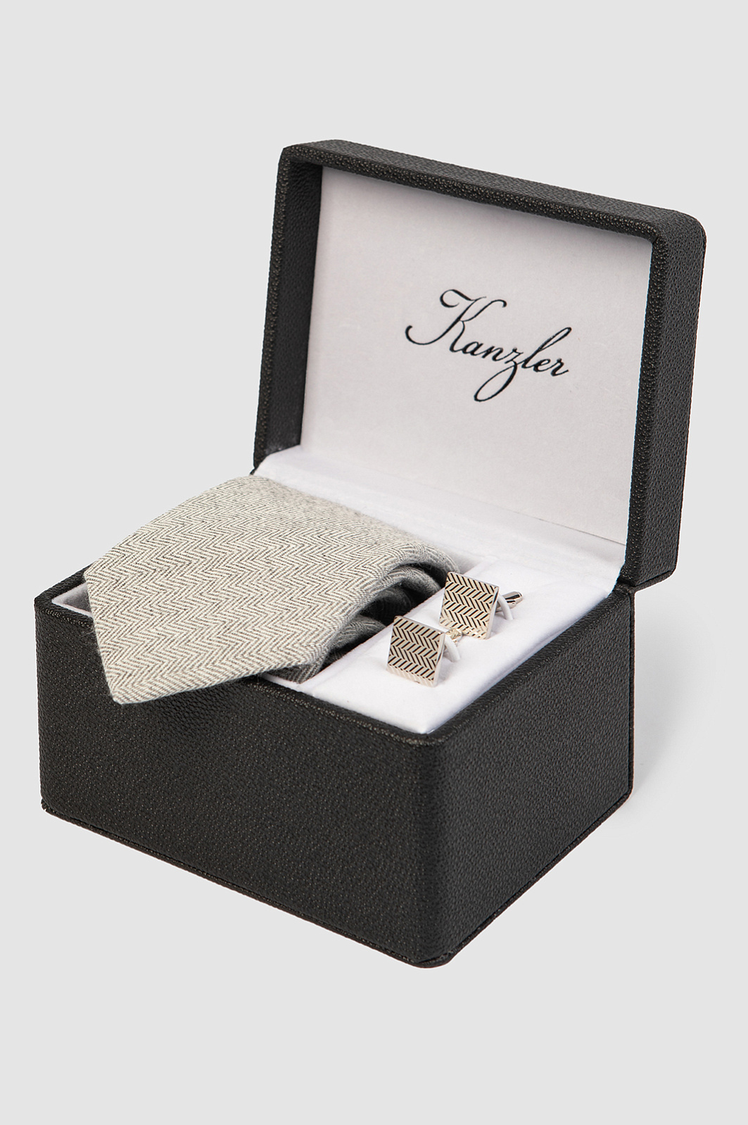 Подарочный набор (галстук + запонки), цвет серый, цена 4 990 руб., код 268130 - купить в Перми в интернет-магазине KANZLER