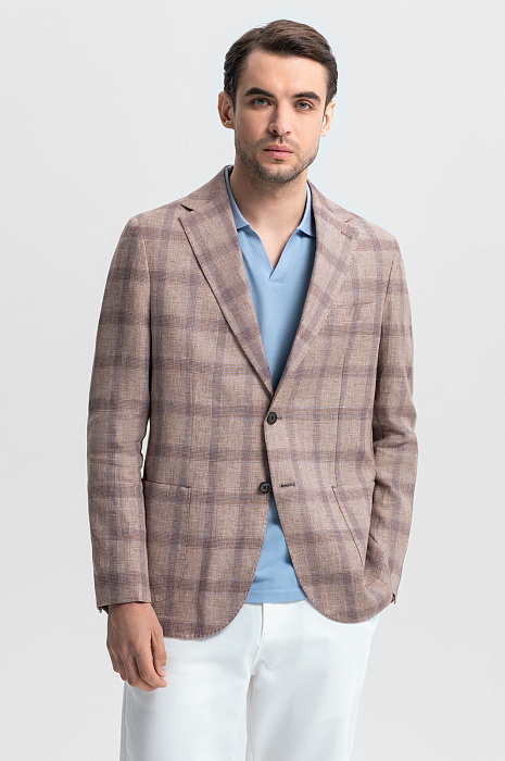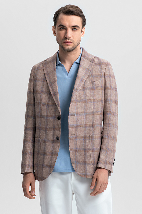 Светло-коричневый пиджак KANZLER – симбиоз элегантности и расслабленного европейского стиля. Классическая однобортная модель с мягкими скругленными линиями карманов и подола создает универсальный образ для деловых встреч, города и путешествий. Материал – 100% благородный натуральный лен – дарит ощущение прохлады в жаркий день и сохраняет тепло в ветреную погоду. Классический крой со свободным прилеганием подходит для любого типа фигуры, легко комбинируется с рубашками, поло и футболками и обеспечивает комфорт, не стесняя движений. Светло-коричневый оттенок, напоминающий песчаные дюны, дополнен графичным узором «оконная рама» – классической клеткой, которая визуально вытягивает силуэт и добавляет образу динамики. Натуральный состав, безупречный крой и дизайн вне времени – модель станет инвестицией в весенне-летний гардероб. Параметры модели: рост 191, 101-79-101 Размер на модели: 50