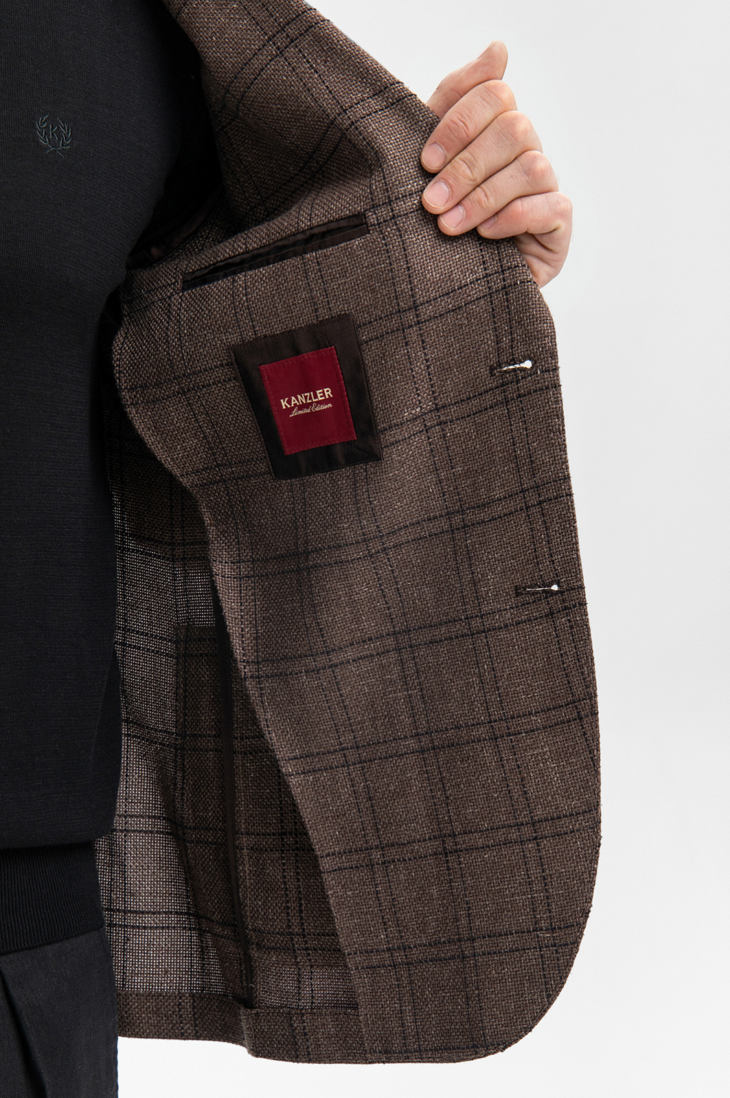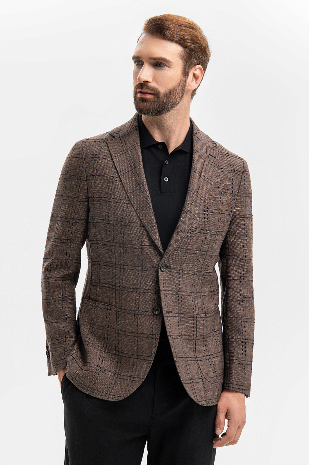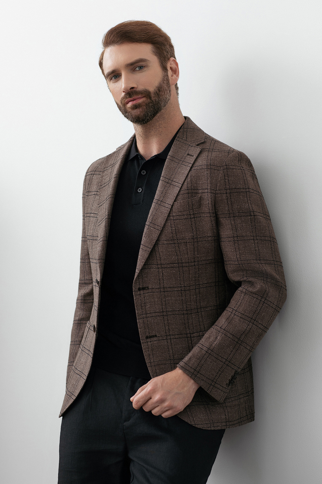 Пиджак из шерсти, льна и хлопка, лимитированная коллекция, цвет коричневый, цена 24 990 руб., код 269613 - купить в Перми в интернет-магазине KANZLER