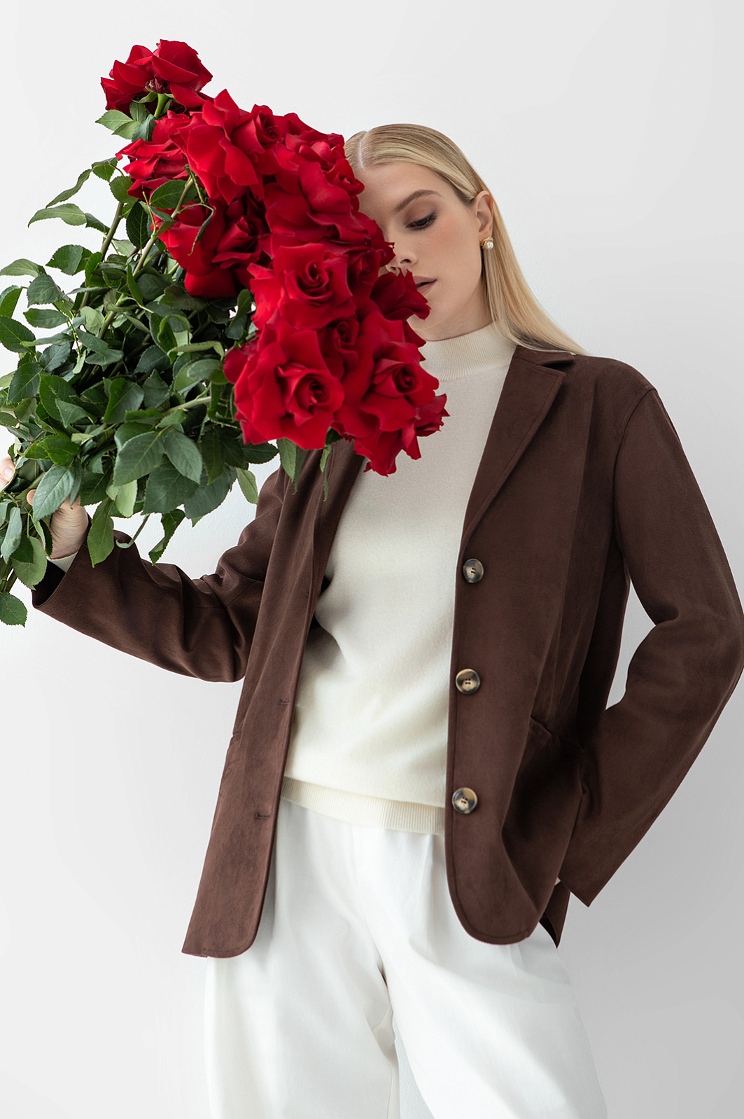 Пиджак из алькантары, цвет коричневый, цена 12 990 руб. - купить в интернет-магазине KANZLER