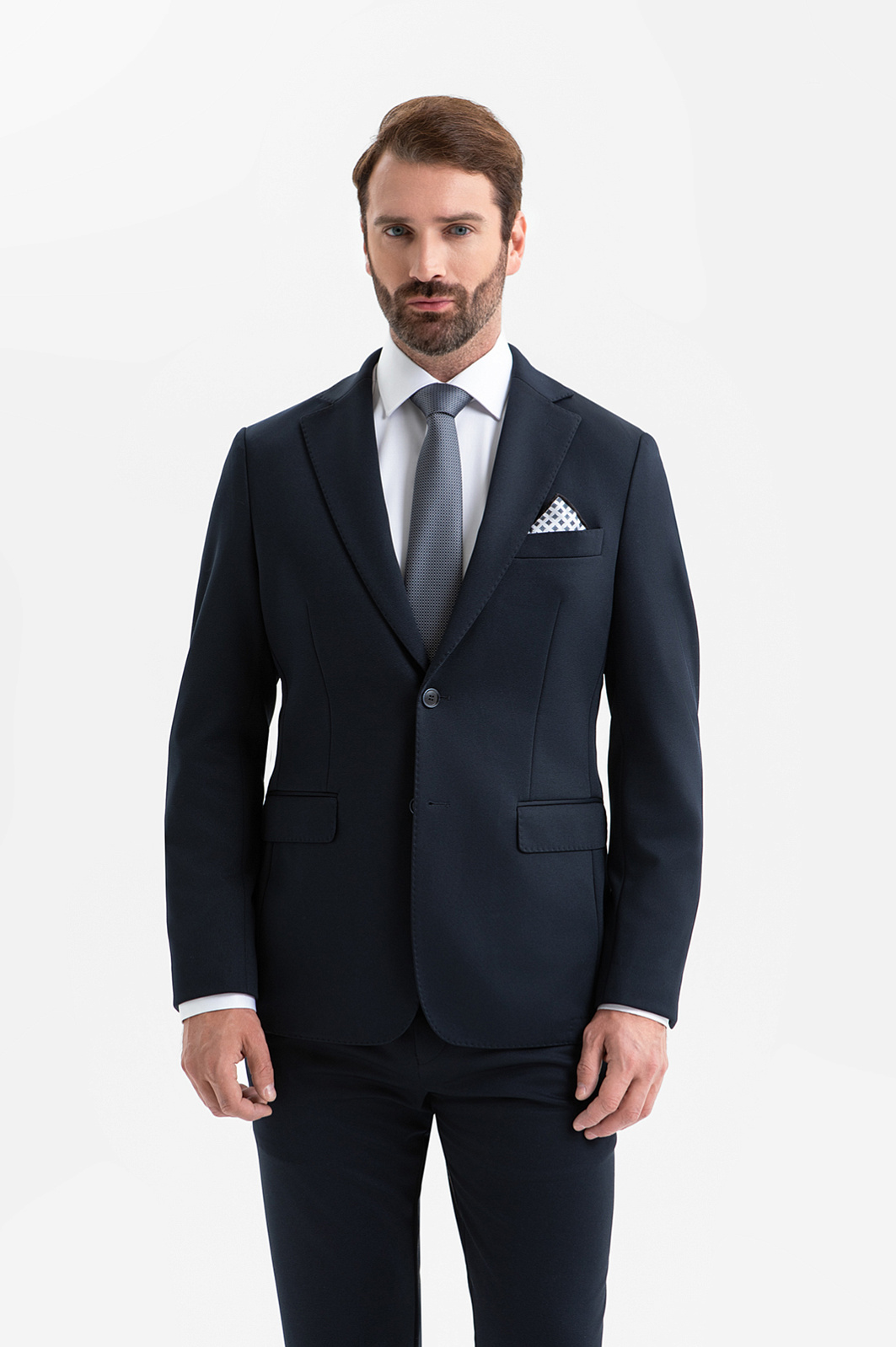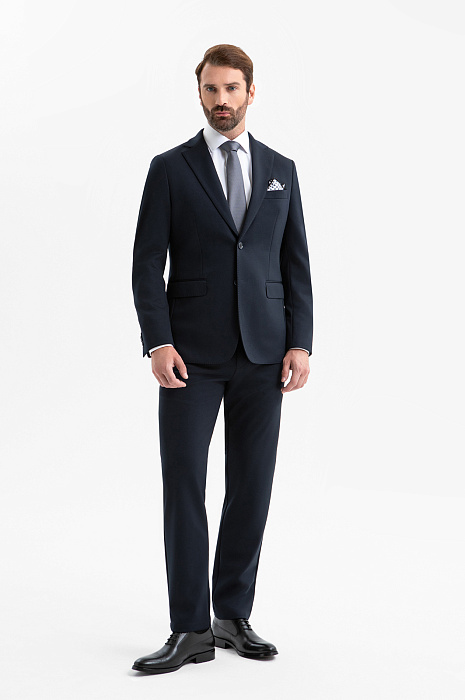 Пиджак KANZLER спокойного синего оттенка слегка прилегающего силуэта — выверенный баланс традиций и инноваций. Облегчённая конструкция без подкладки делает модель современной и комфортной. Чёткая линия плеча придаёт образу собранность и мужественность. Аккуратная портновская строчка по краю лацканов, нагрудный карман с листочкой и нижние карманы с клапанами подтверждают вневременной классический стиль пиджака. Практичное технологичное полотно произведено из полиэстера с добавлением спандекса. Сочетание современных волокон делает ткань устойчивой к сминанию и обеспечивает свободу движений для жизни в городском ритме. Параметры модели: рост 189, 102-80-99 Размер на модели: 50