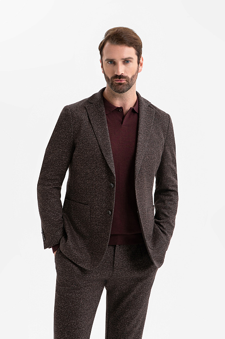 Пиджак однобортный с эффектом меланжа, цвет коричневый, цена 16 990 руб., код 270009 - купить в Перми в интернет-магазине KANZLER