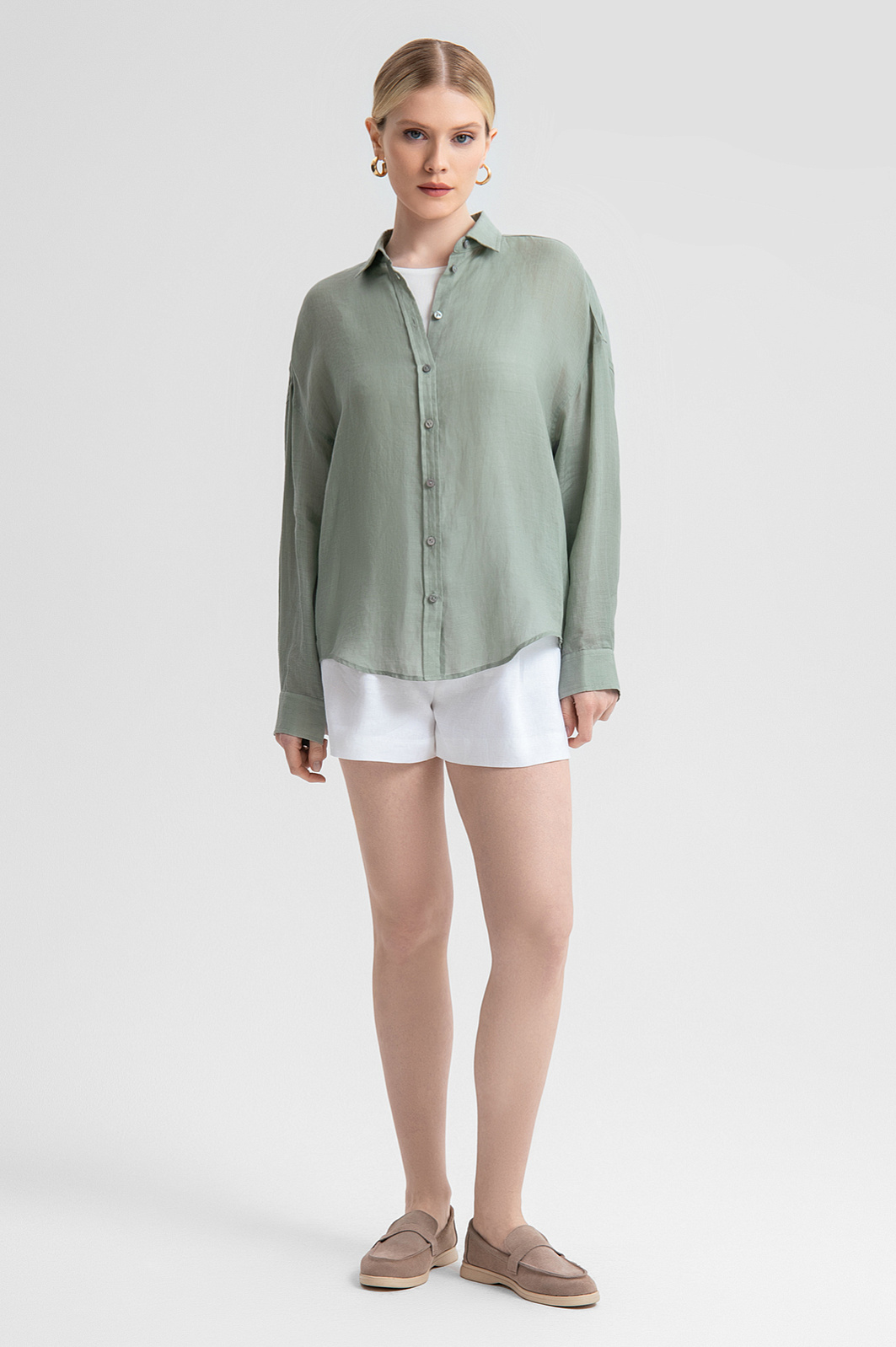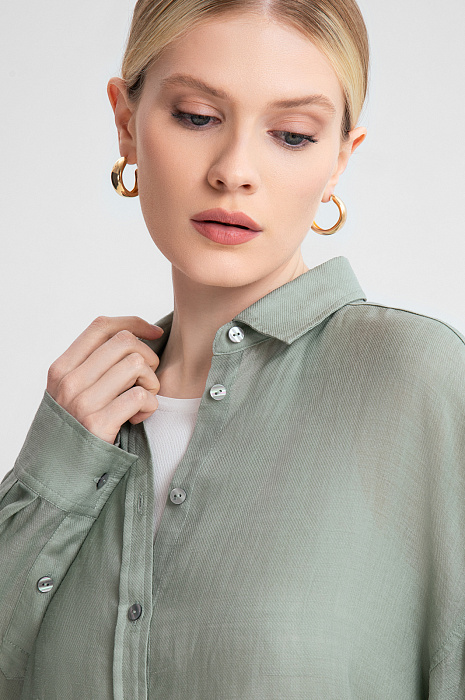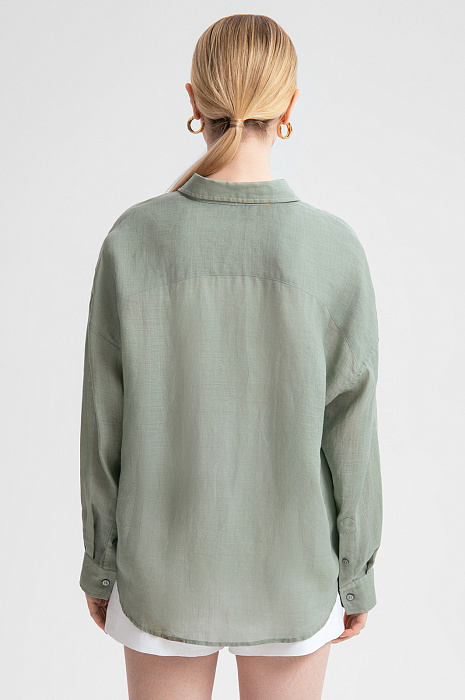 Рубашка из рами свободная, цвет оливковый, цена 8 990 руб. - купить в интернет-магазине KANZLER