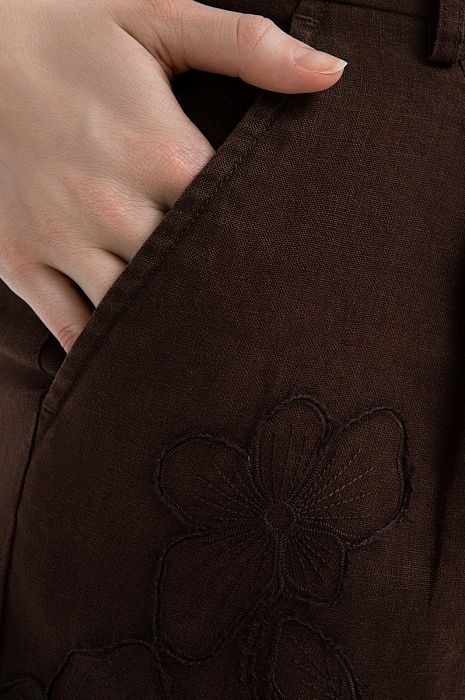 Коричневые шорты KANZLER изо льна, украшенные цветочной вышивкой, — универсальная по дизайну и качеству материала вещь для тёплых дней. Она легко сочетается как с повседневной, так и с нарядной женственной одеждой. Элегантный свободный крой с мягкими складками спереди и карманами по бокам удобен для городских выходов и расслабленного отдыха. Лён — комфортный для тела материал, особенно в тёплые и жаркие дни. Его прочные гипоаллергенные волокна хорошо пропускают воздух, поддерживая ощущение прохлады. А естественная текстура придаёт вещи непринуждённый шарм в духе современных экотрендов.