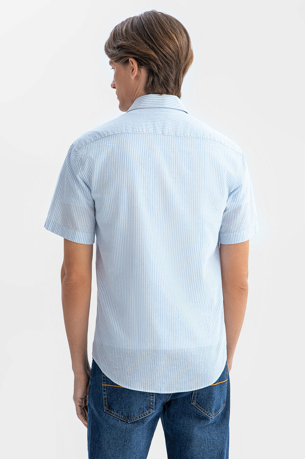 Голубая сорочка KANZLER с коротким рукавом – идеальный спутник для самых разных мероприятий в теплое время года: от барбекю до вечерних встреч с друзьями или прогулок по набережной. Особый комфорт создает уникальный материал премиального качества от Getzner, австрийского производителя с более чем 200-летней историей. Натуральные волокна льна и хлопка обеспечивают отличную воздухопроницаемость и легкость, а также прочность и долговечность. Голубой цвет и узор в тонкую полоску привносят в образ свежесть и динамичность. Наши стилисты рекомендуют дополнить модель белой футболкой, прямыми джинсами и белыми кедами из натуральной кожи. Параметры модели: рост 191, 97-77-99 Размер на модели: 40