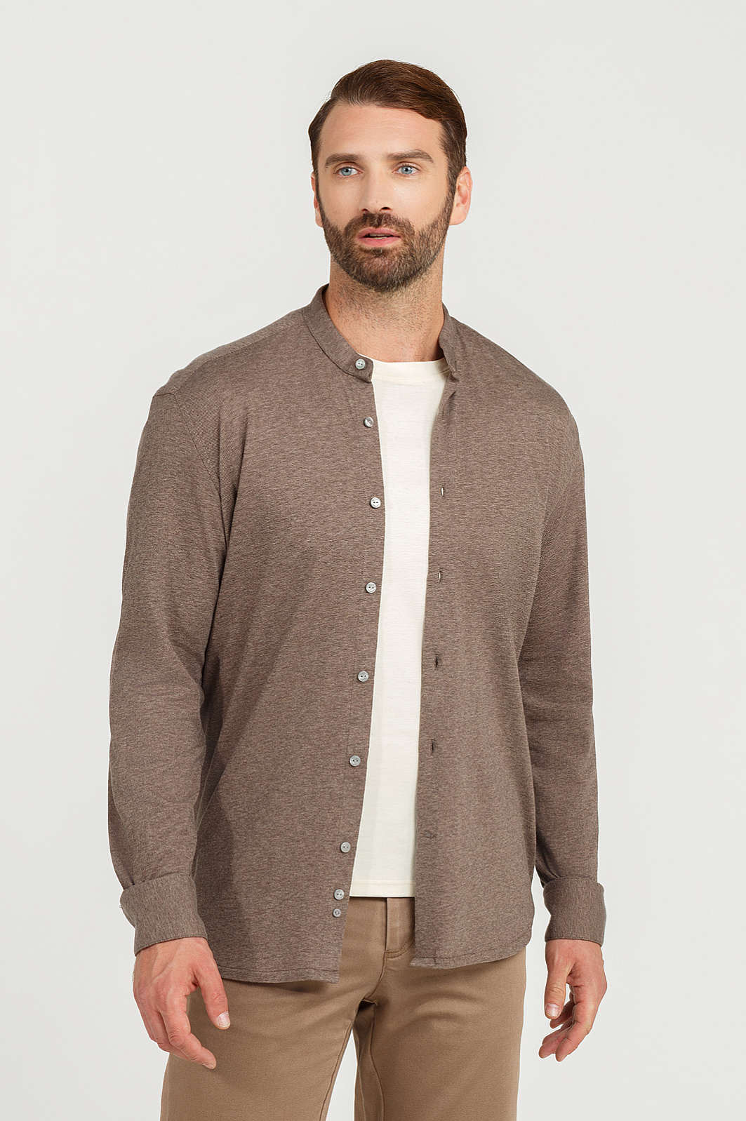 Сорочка из хлопка и кашемира, лимитированная коллекция, цвет коричневый, цена 4 990 руб., код 268649 - купить в Перми в интернет-магазине KANZLER