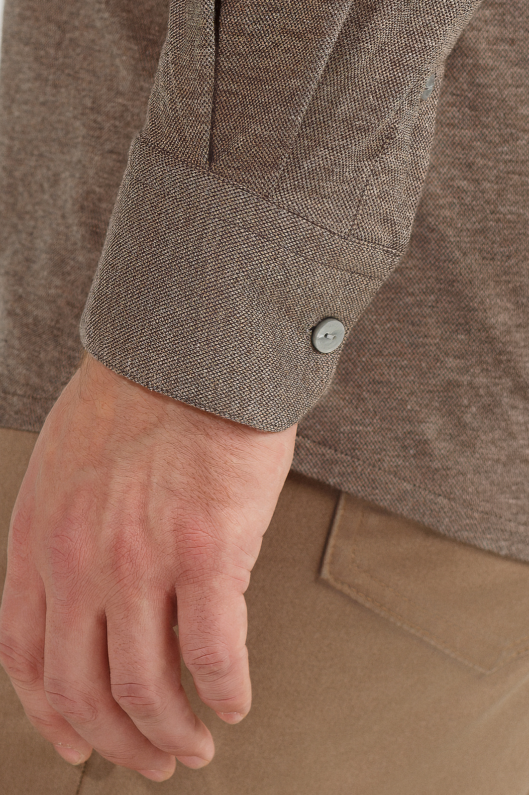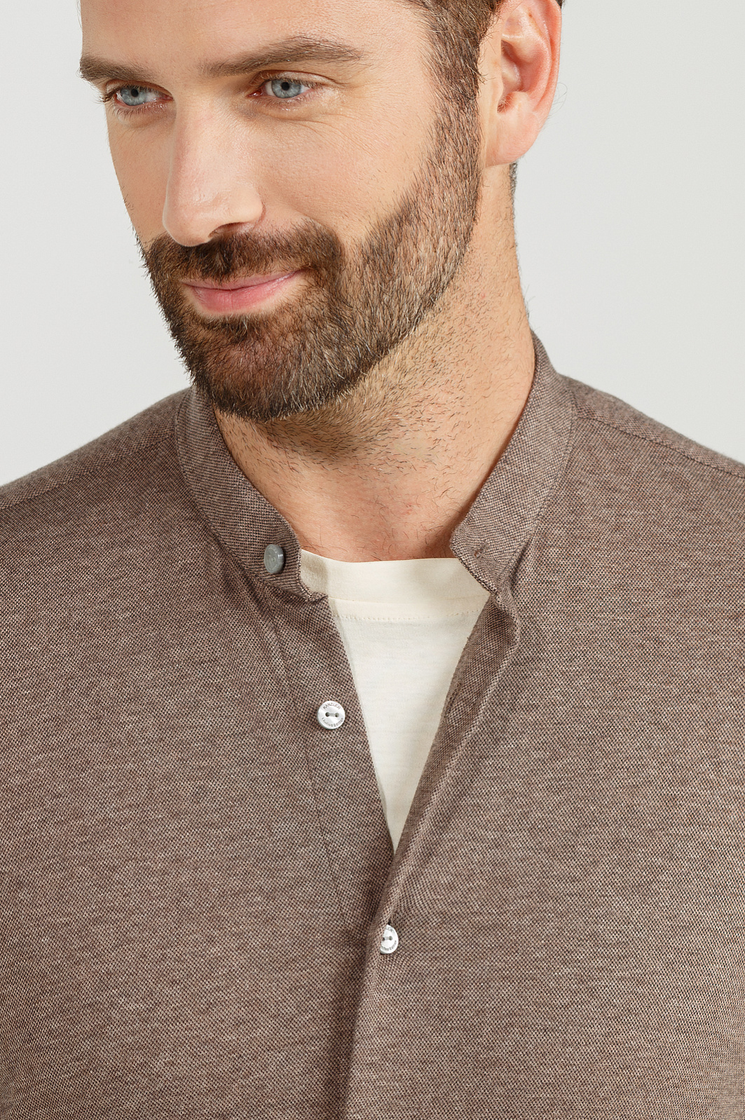 Представляем сорочку из лимитированной коллекции с воротником мандарин, широкими манжетами и аккуратными пуговицами. Выполнена из мягкого хлопка и кашемира, который придает изделию не только мягкость и легкость, но и обеспечивает высокий уровень комфорта. Хлопок гарантирует воздухопроницаемость и долговечность, а кашемир обеспечивает роскошный внешний вид. Пастельно-бежевый цвет прекрасно сочетается с любыми цветами, позволяя создавать как строгие, так и расслабленные образы. Приталенный силуэт подчеркивает фигуру, создавая элегантный, подтянутый образ. Она идеально сидит на теле, при этом не стесняя движений, что важно для комфорта в течение дня. Модель можно носить как первый слой или надеть поверх футболки с брюками из нашей коллекции. Параметры модели: рост 189, 102-80-99 Размер на модели: 40