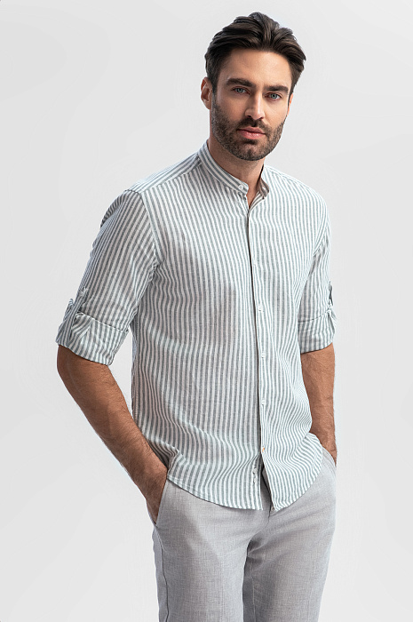 Сорочка изо льна и хлопка, цвет зеленый, цена 7 693 руб., код 269332 - купить в Перми в интернет-магазине KANZLER