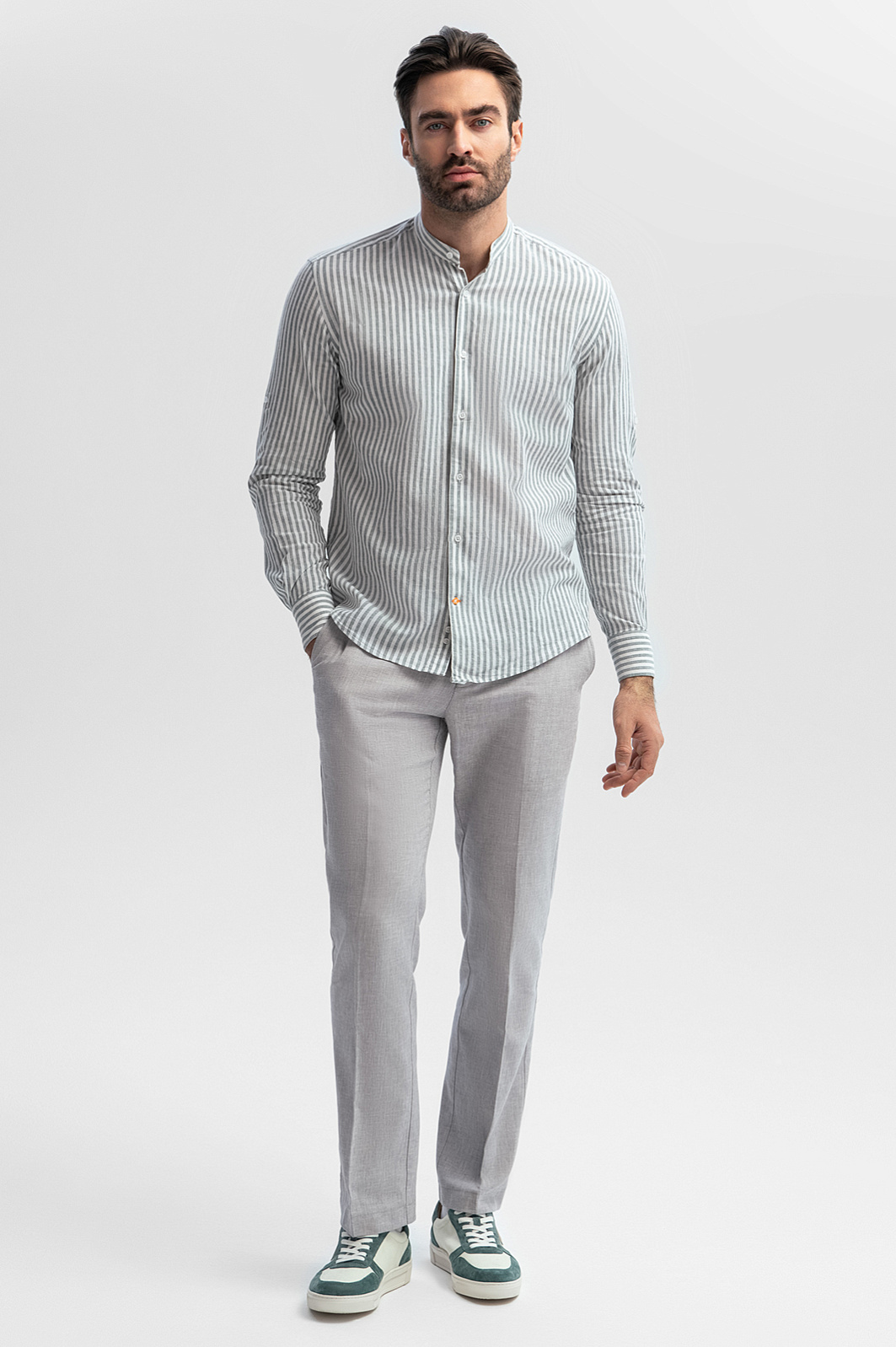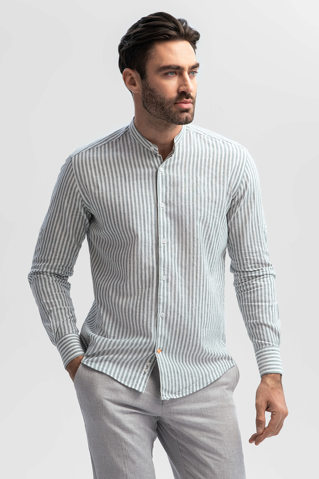 Сорочка KANZLER изо льна и хлопка в полоску сочетает в себе все, чтобы стать любимой в гардеробе для теплого сезона. Фактурный материал объединил лучшие свойства натуральных волокон: мягкий хлопок обеспечивает воздухопроницаемость, позволяя коже дышать, а прочный лен охлаждает кожу в жаркий день и сохраняет комфортную температуру в прохладную погоду. Оригинальный дизайн с воротником-стойкой придает облику современный и утонченный вид. Регулируемые рукава позволяют адаптировать сорочку под ваш стиль и настроение. Классический узор в полоску гармонирует с различными элементами гардероба и сочетается как с классическими джинсами, так и с формальными брюками. Это изысканный выбор для повседневного, делового образа или особого случая. Параметры модели: рост 192, 108-83-102 Размер на модели: 40