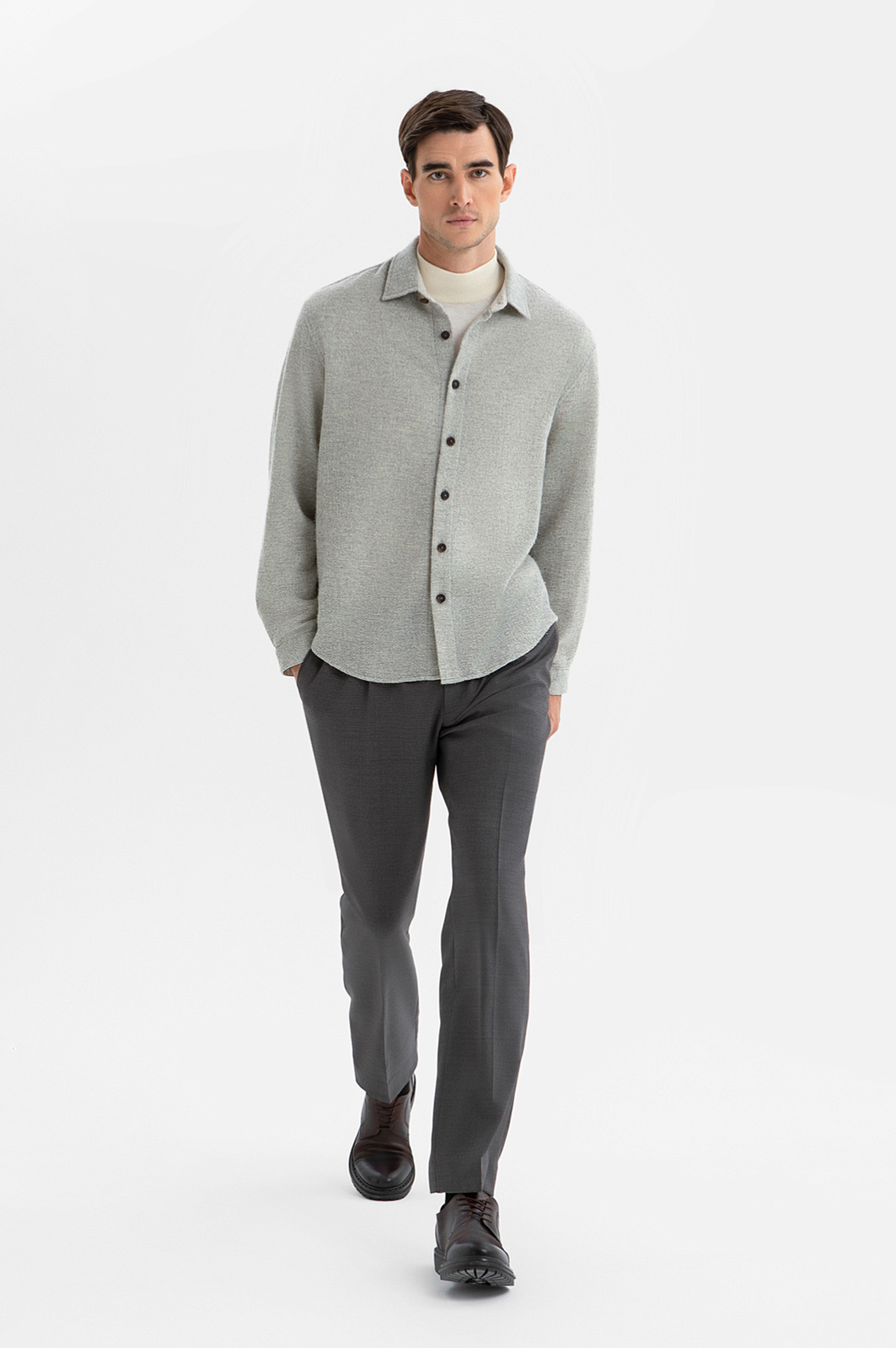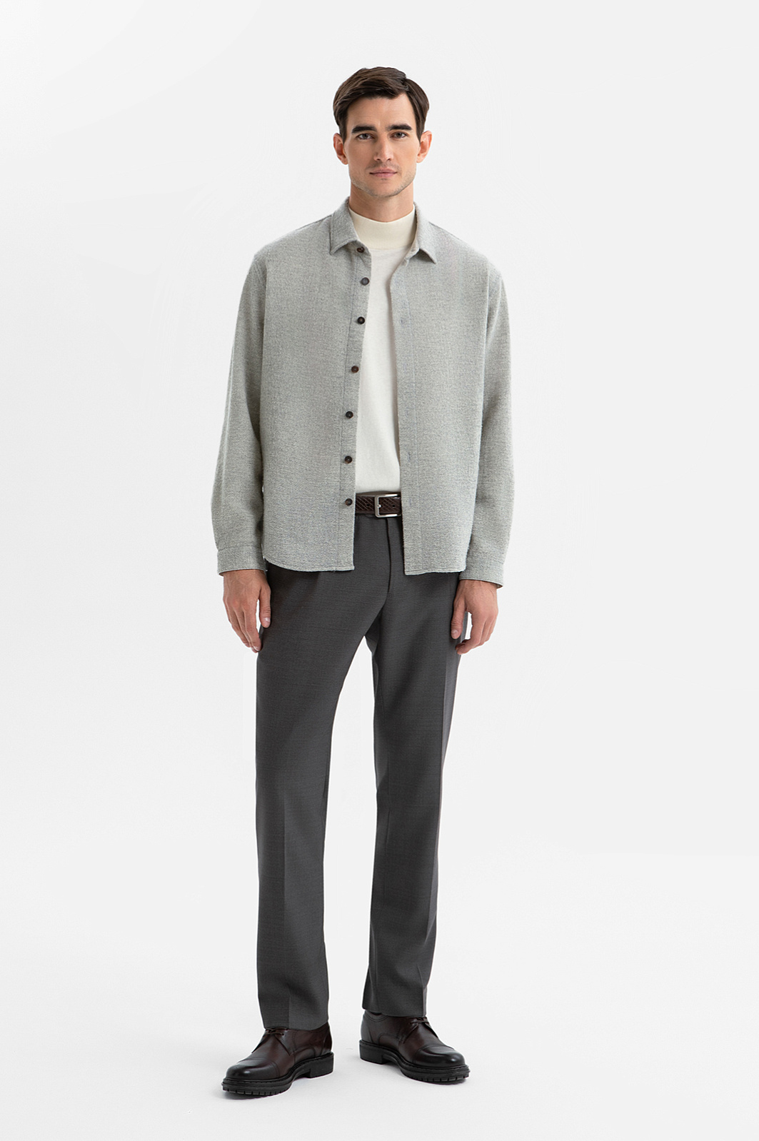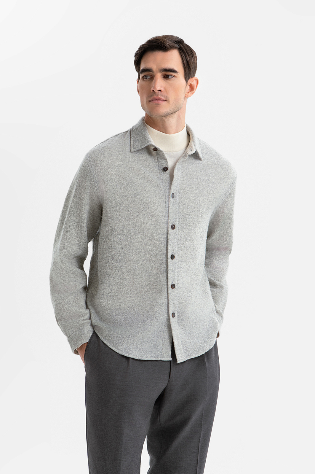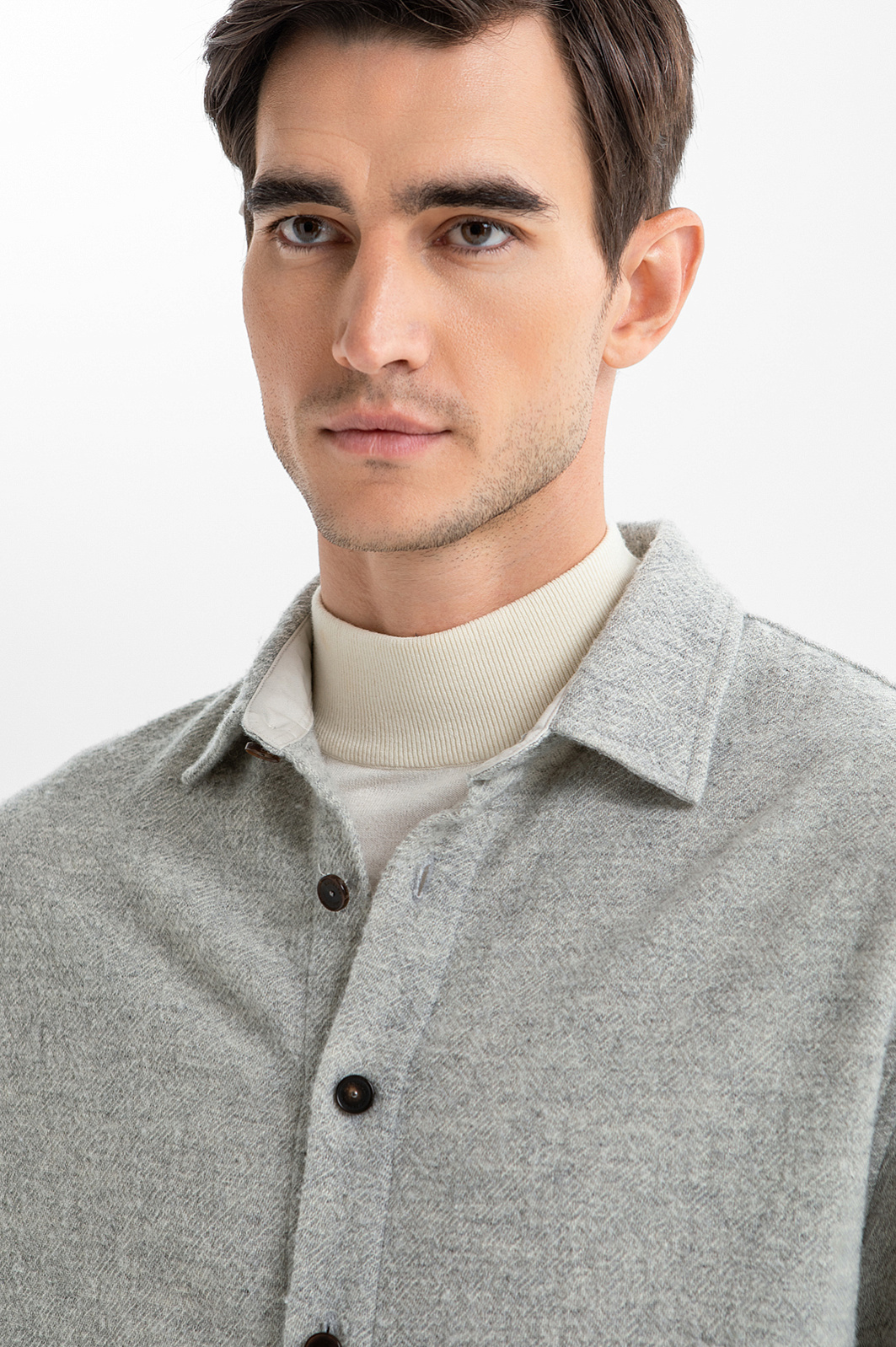 Сорочка KANZLER из чистой шерсти из лимитированной коллекции — самодостаточная вещь, которую хочется носить снова и снова. Она позволяет мужчине выразить утончённый вкус через сдержанную роскошь и чистые лаконичные линии. Её светлый серо-бежевый оттенок напоминает зимний рассвет, который создаёт ощущение спокойствия и уюта. Контрастные пуговицы служат аккуратным стильным акцентом. Закруглённые края низа предоставляют возможность носить сорочку навыпуск для непринуждённого стиля или заправленной — для элегантного, продуманного образа. Модель выполнена из мягкой гипоаллергенной 100-процентной шерсти, которая дарит телу тепло, комфорт и заботу. Параметры модели: рост 192, 101-76-97 Размер на модели: M