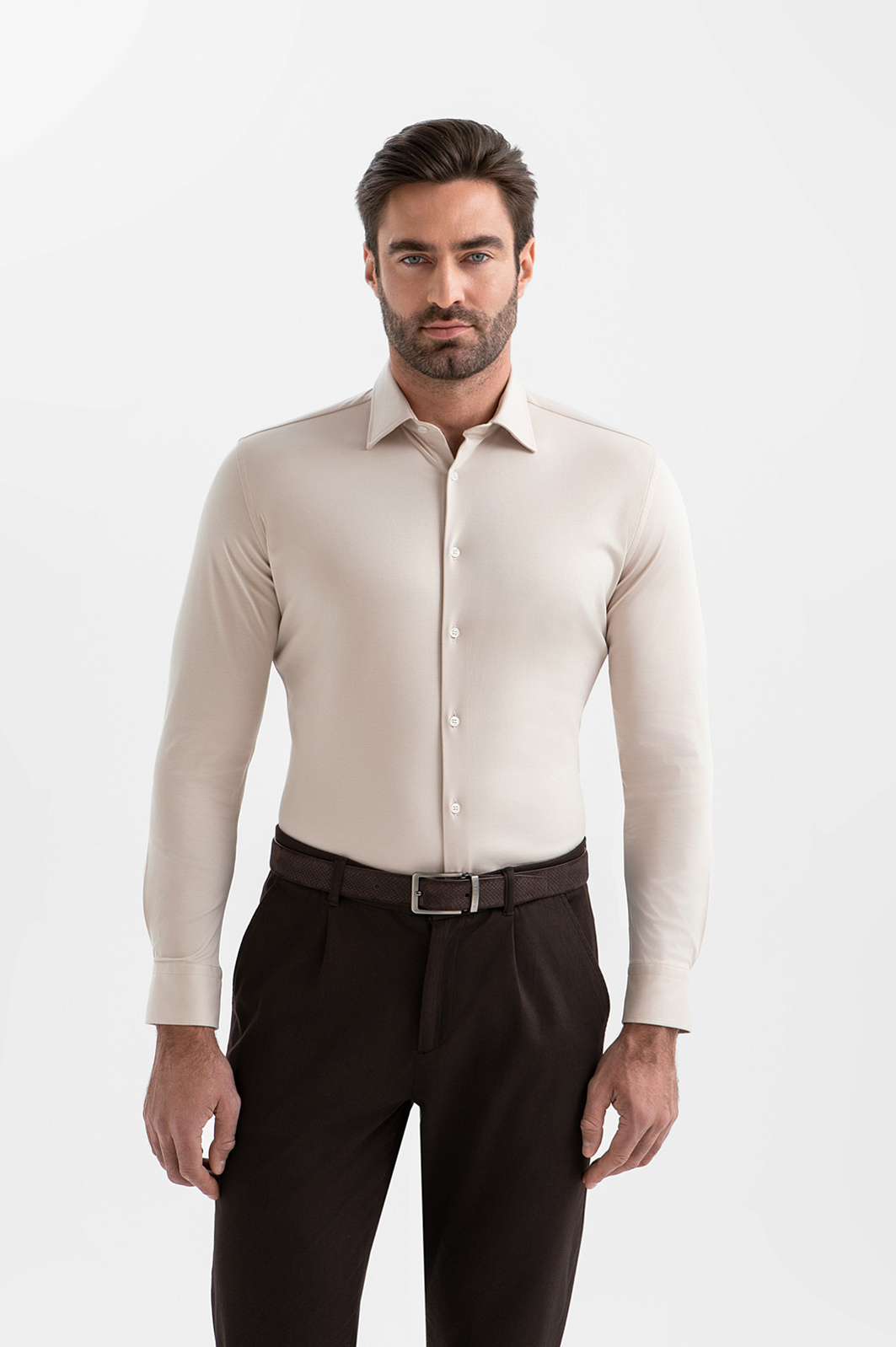 Сорочка KANZLER из чистого хлопка в нежно-бежевом оттенке — воплощение спокойной элегантности и безупречного вкуса. Она смотрится одинаково стильно в формальных и расслабленных образах. Деликатный оттенок подчёркивает благородство материала и придаёт образу утончённость. Аккуратный воротник, французская планка и пуговицы в тон делают модель лаконичной, цельной и современной. Прилегающий крой мягко очерчивает контуры тела, не ограничивая свободу движений. Трикотаж выполнен из гипоаллергенного хлопка (100%) — лёгкий, дышащий, эластичный. Ткань хорошо адаптируется к индивидуальным особенностям фигуры и поддерживает свежесть тела.
