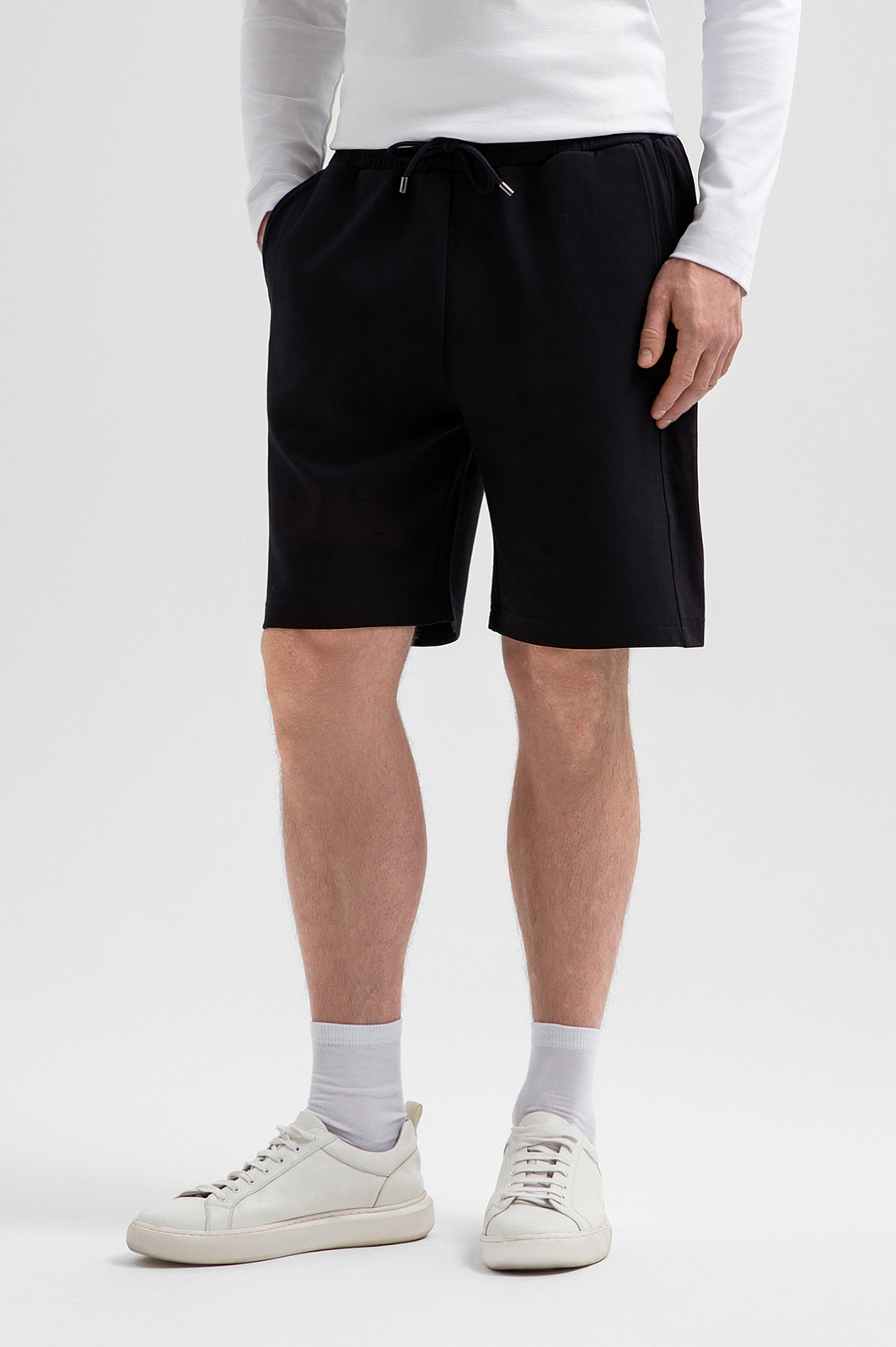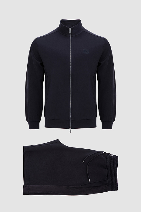 Тёмно-синий костюм KANZLER из хлопкового трикотажа с вставками из полиэстера — универсальный комплект для активного отдыха, прогулок и спокойных уикендов на природе. Костюм состоит из толстовки на молнии, украшенной вышитым логотипом и фирменным шильдиком, и свободных удлинённых шорт на кулиске. Комплект сшит из мягкого смесового хлопка. Его натуральные гипоаллергенные волокна поддерживают ощущение свежести и сохраняют естественное тепло тела. Добавление полиэстера и эластана придаёт материалу прочность и пластичность.