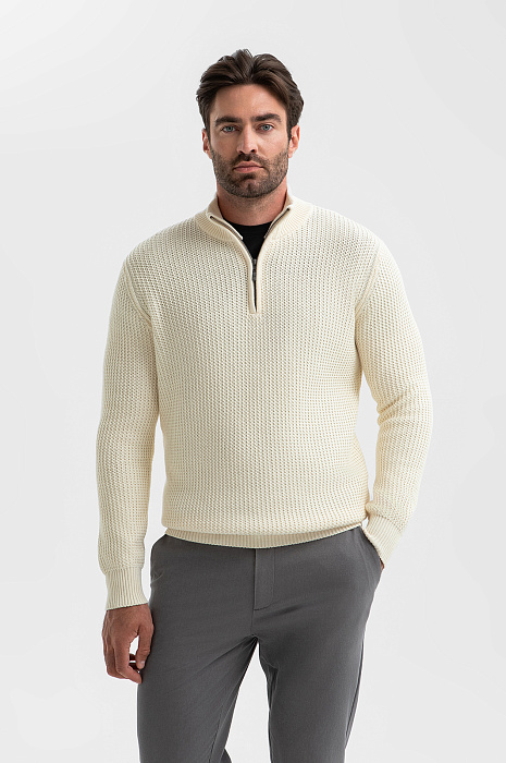 Свитер из хлопка, цвет молочный, цена 7 990 руб., код 270257 - купить в Перми в интернет-магазине KANZLER