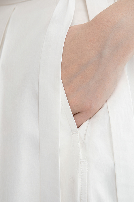Роскошная белая юбка-миди KANZLER из хлопка — стильная и универсальная модель, которая легко вписывается в летние образы. Белый цвет придаёт ей свежесть и благородство. Передняя часть оформлена мягкой широкой драпировкой. Удлинённый пояс со свободно ниспадающими концами служит непринуждённым акцентом. Боковые карманы аккуратно спрятаны в швах и остаются почти незаметными, сохраняя безупречные линии кроя. Основная часть и подкладка выполнены из чистого хлопка. Его гипоаллергенные воздухопроницаемые волокна поддерживают ощущение свежести и берегут тело от перегревания в жаркие дни.