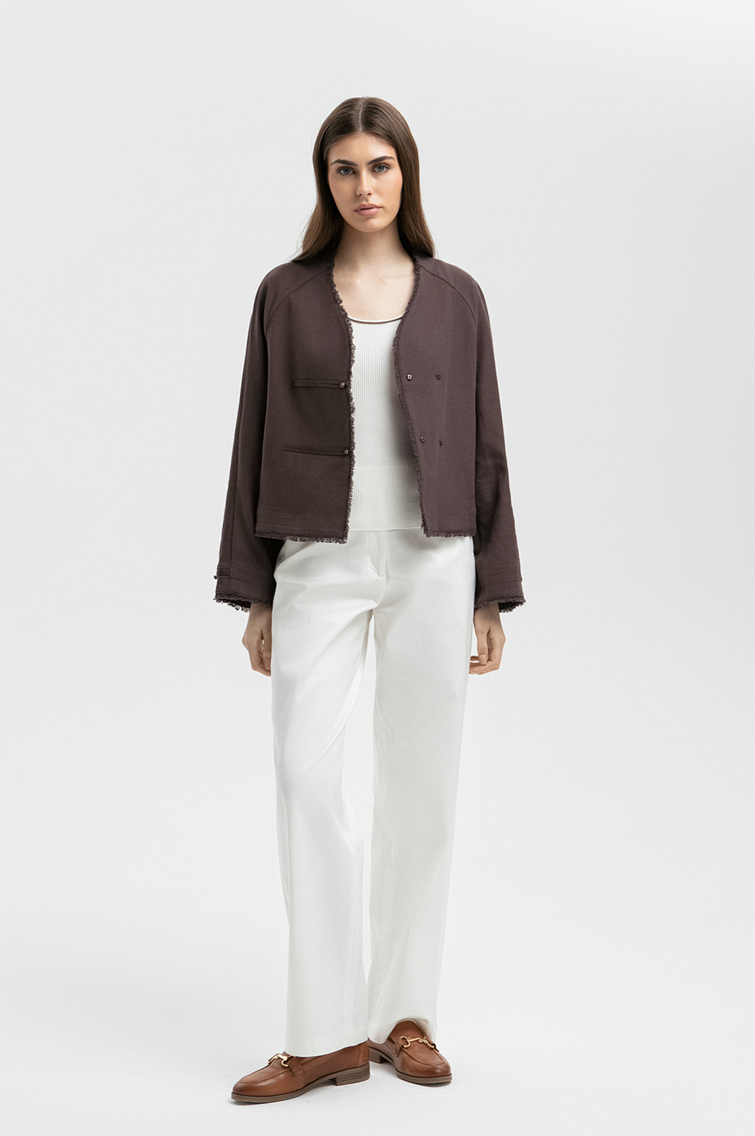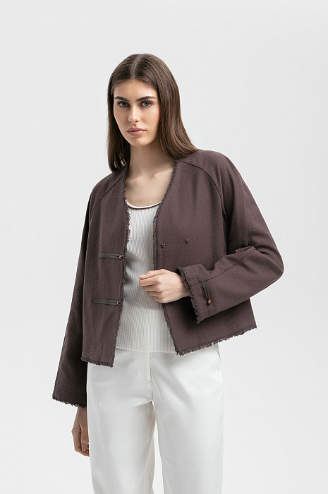 Жакет из хлопка и льна, цвет коричневый, цена 14 990 руб. - купить в интернет-магазине KANZLER